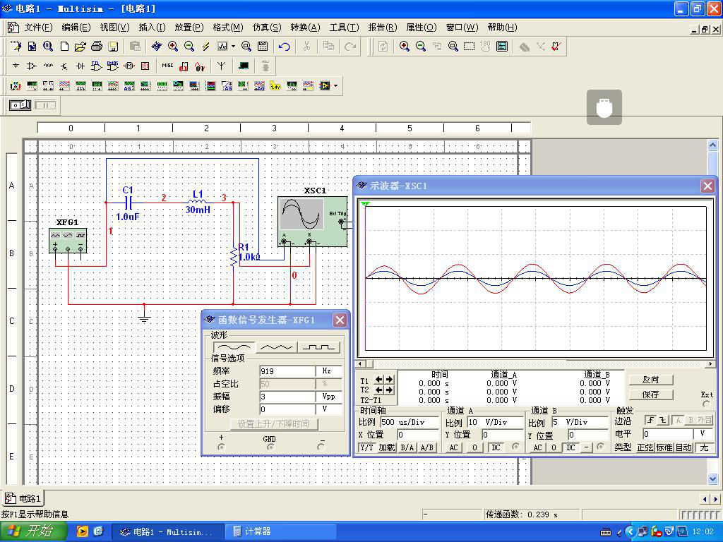 图1 RLC串联电路仿真界面图