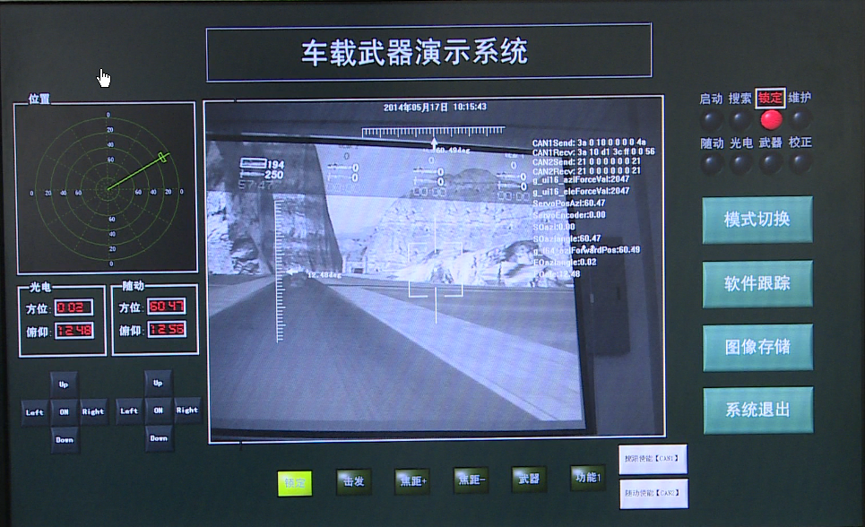 实验功能:系统可以通过虚拟战场仿真系统建立可视化作战环境,通过模拟车载武器系统操控软件控制模拟车载武器系统进行目标搜索、瞄准和打击。