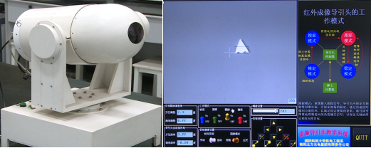 实验效果:导引头半实物仿真系统可以模拟多种具有不同形状特性和运动特性的空中红外目标,可以仿真导引头锁定、搜索、跟踪和稳定等多种工作状态,对学员深刻理解机电控制原理在装备中的应用具有非常好的教学效果。