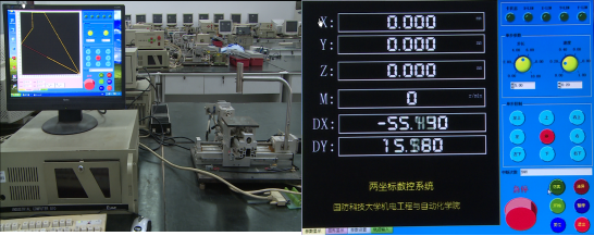 实验功能:系统可在实验室提供的基于LabWindows/CVI 2010的开放式软件平台进行编程,在屏幕上显示待加工曲线的轨迹和实际插补曲线的轨迹;移植到实际的两坐标实验台后,完成实际的验证。
