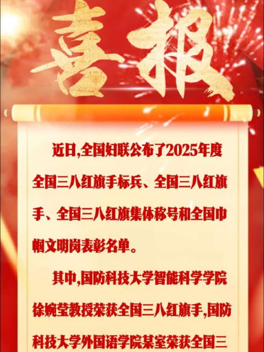 高地喜讯丨国防科大荣获两项全国三八红旗手荣誉
