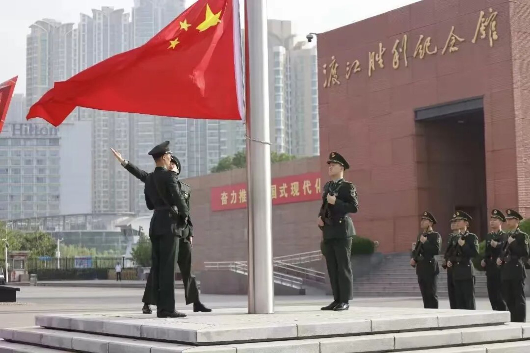 外国语学院学员于南京渡江战役胜利纪念馆隆重举行升国旗仪式,深切缅怀革命烈士,热烈献礼伟大祖国。