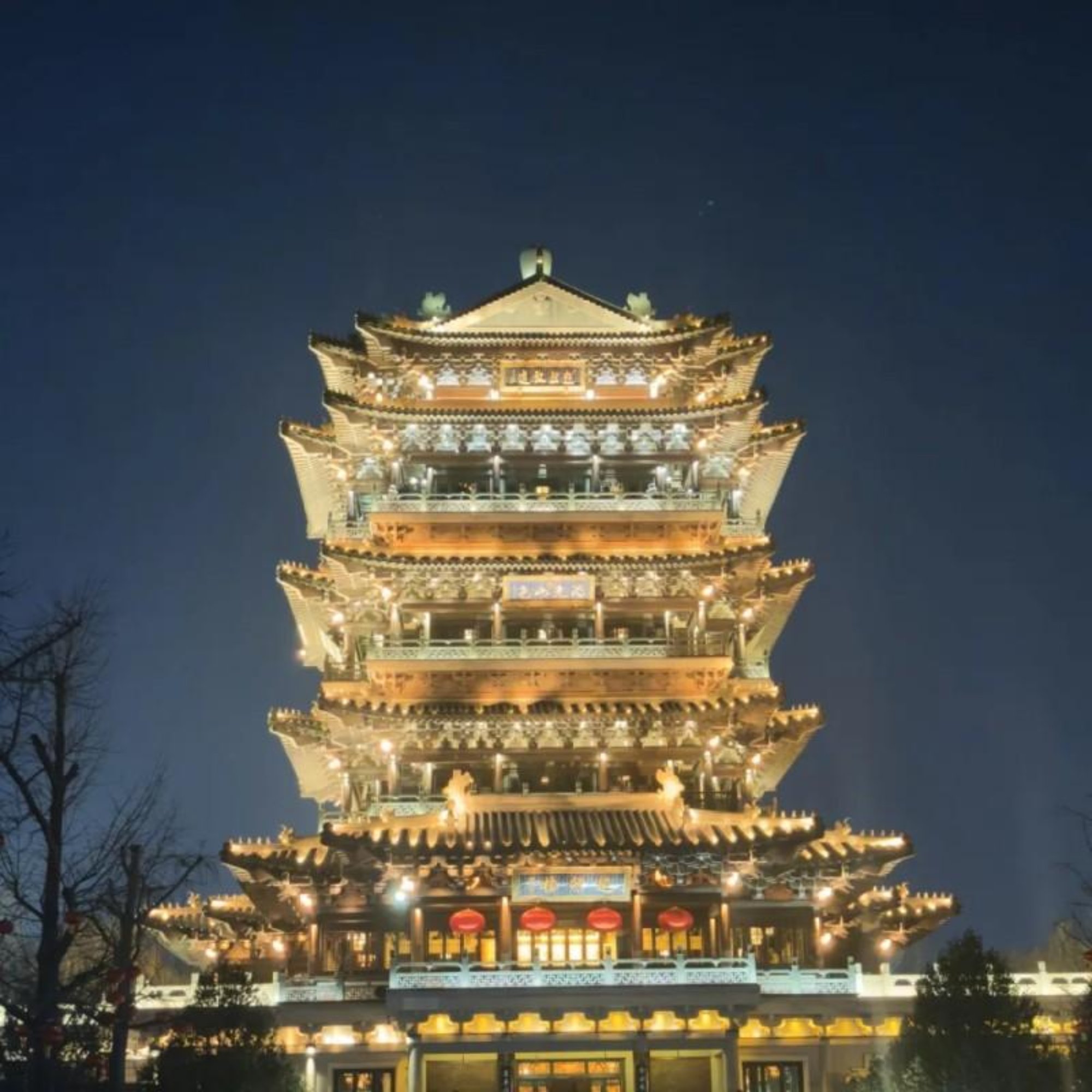 夜色如墨,超然楼鎏金矗立。飞檐似夜空展翼,宫灯如檐角垂星,层叠斗拱勾连古今,光燃历史余温,瓦载历下诗魂。鎏金楼影映深邃夜空,静止楼阁承载城的记忆,诉说着超然楼百年风华与泉城文脉绵长。