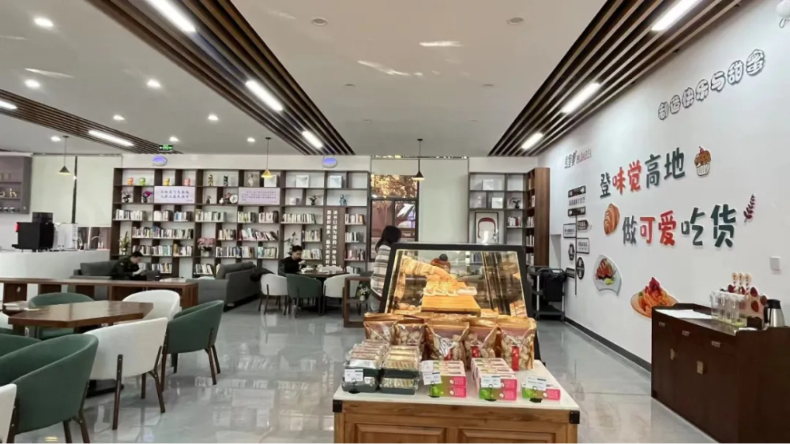 咖啡书吧的环境设计简约而温馨,舒适的座椅、柔和的灯光,营造出一种轻松愉悦的氛围。咖啡书吧还提供各式各样的咖啡、茶饮以及现烤烘焙甜点。学员们可以在这里点上一杯香浓的咖啡,搭配新鲜出炉的蛋糕、面包,伴随着书香,享受一段宁静的阅读时光。