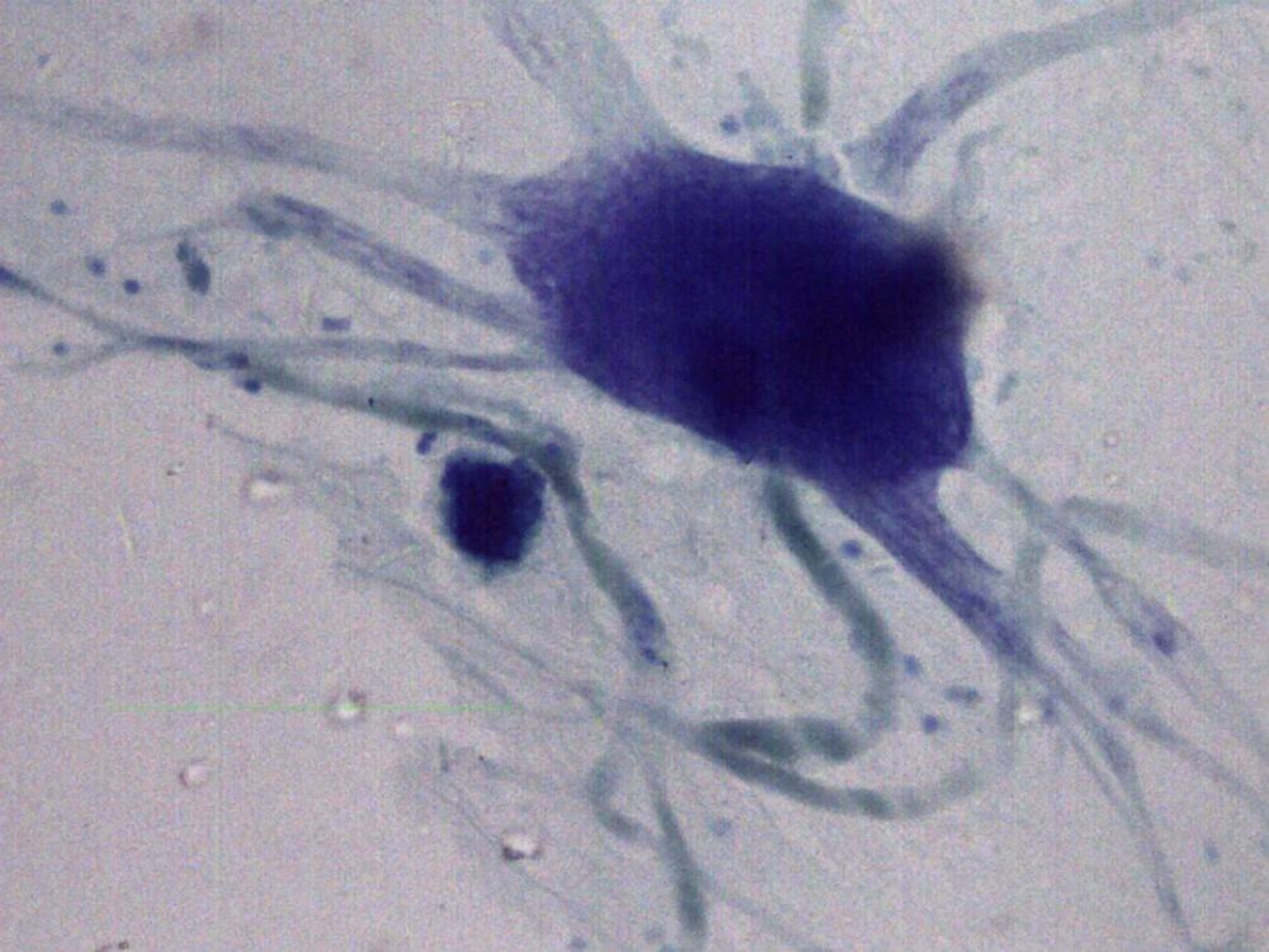 深紫的胞体是这张微观图景的核心,无数纤细的丝缕从这里向外舒展,像生命向外探触的思绪。这些细丝轻轻延展、交错,在微观世界里传递着电与化学的信号,把外界的光、声、触,转化为生命能读懂的神经密码。每一根丝缕都在低声絮语,串联起感知与行动,让意识的微光,变成可被凝视的纹理。