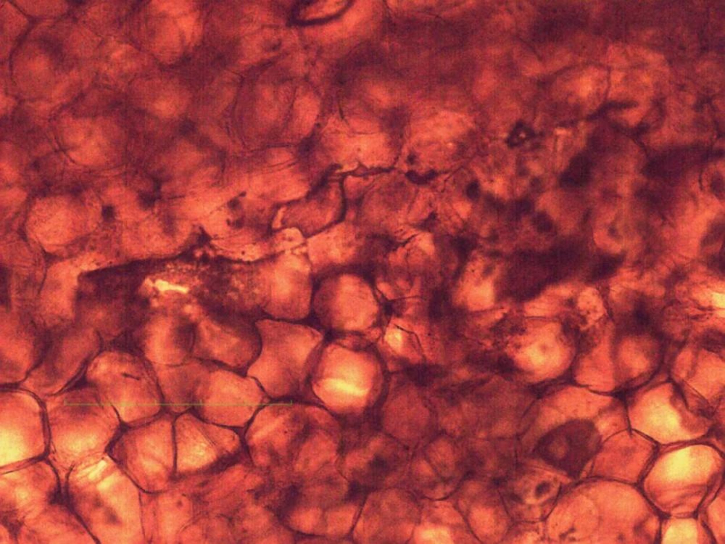 暖橙调的视野里,脂肪细胞挤挤挨挨地铺成一片蜂窝状肌理。每个细胞都托着一枚透亮的脂滴,深色的细胞膜像细密的针脚,把这些 “能量琥珀” 缝成柔软的组织织锦。它们是身体里沉默的储能库,在微米级的方寸间,既封存着富余的能量,也悄悄参与着代谢与稳态的调节,让坚硬的切片里,藏着生命最温柔的缓冲与储备。