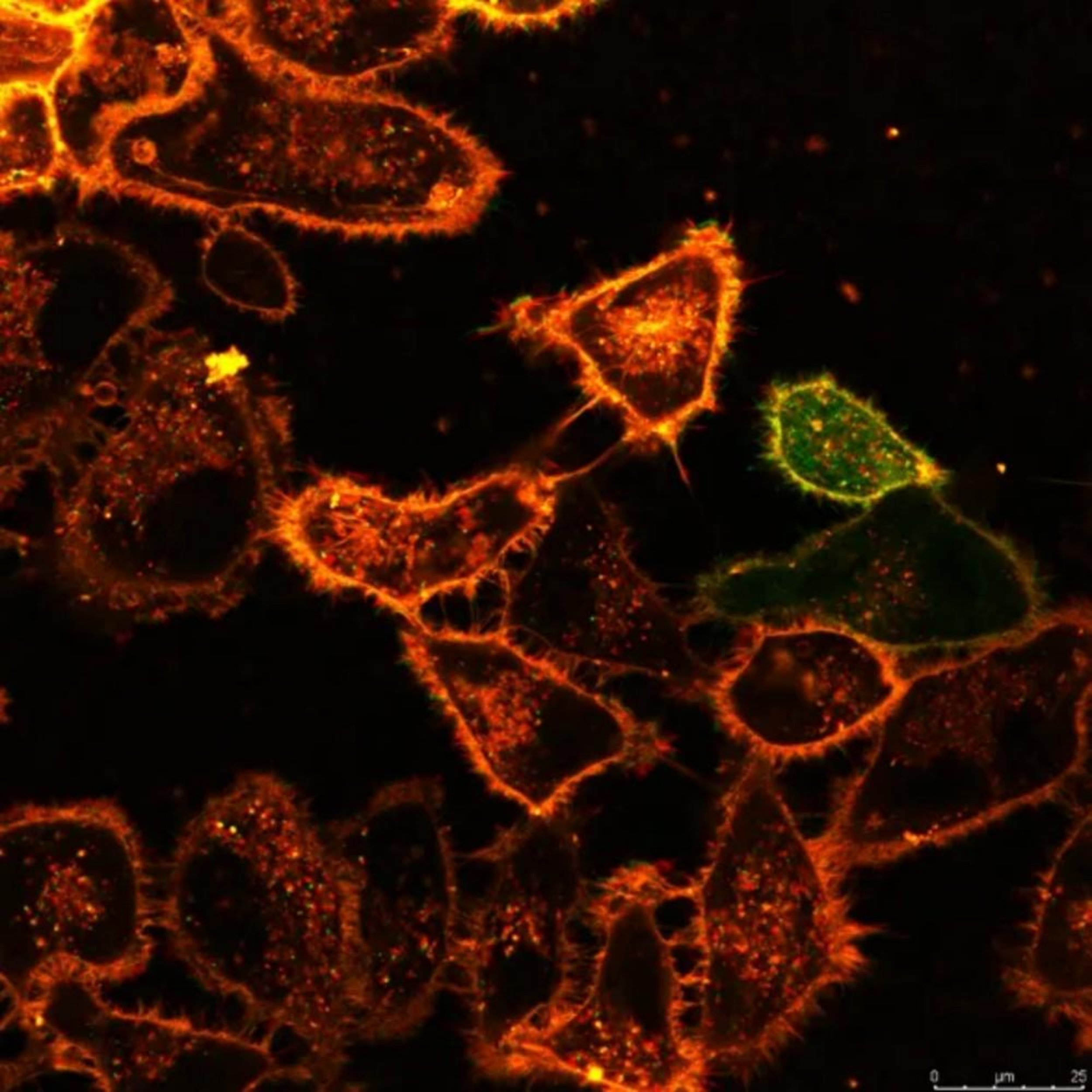 深邃的暗幕之上,细胞如星芒般铺展,荧光信号编织出动人的微观图景。单通道的赤红荧光,勾勒出胞内结构的轮廓,像暗夜中燃烧的火种,标记着特定分子的分布轨迹;多通道的橙绿交织,则是更细腻的生命密语——橙红色的光电锚定出细胞膜上的蛋白,光点交错间,是分子间对话的瞬间,是信号传递的脉搏。这些荧光照亮的痕迹,既是细胞协作、机体稳态的精密注脚,也是“生命之光”生物技术俱乐部探索生命本真的初心与方向。