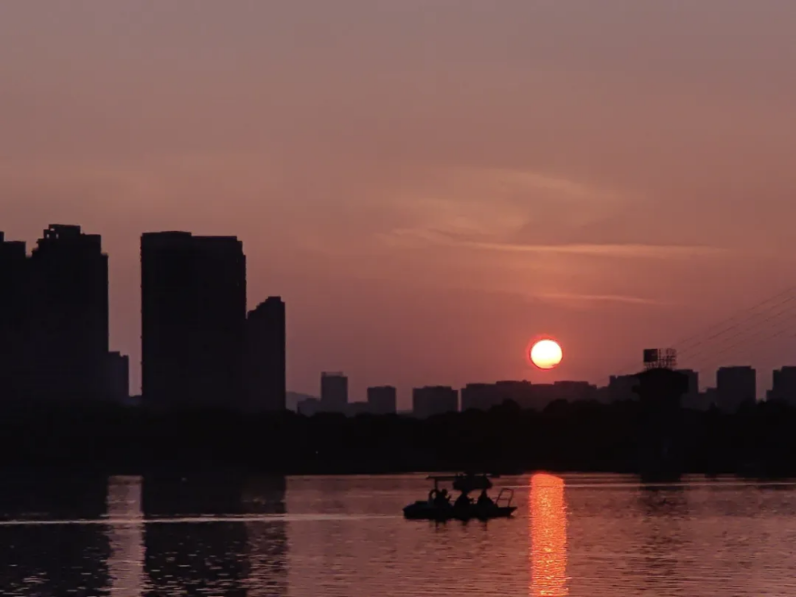 暮色漫染,落日熔金,洒在如镜湖面。小船载着人间烟火轻漾,楼宇剪影静对晚照。—百多年前,那艘红船自风雨中驶来,以信仰为帆,载着救亡图存的热望。今朝山河安澜,此般静好,小船仍徐徐向前,乘风破浪。