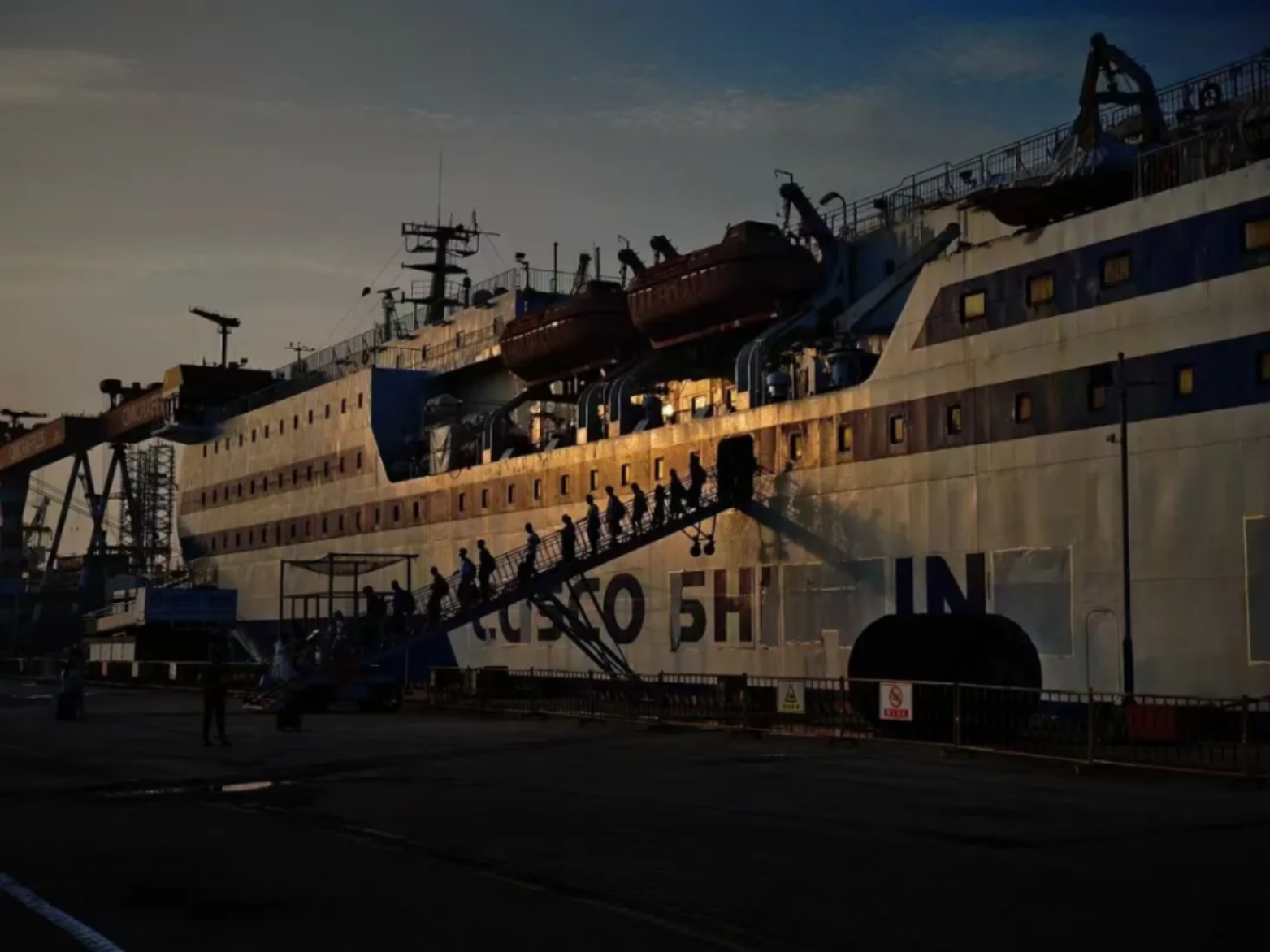 黄昏时分,巨大的客轮停靠码头,夕阳给船身镀上暖金。舷梯上,人影如剪影,缓缓移动,似在奔赴一场未知的远方。码头的静谧与船舶的厚重交融,时光在此刻慢下来,每一步都藏着出发或归来的故事,满是烟火与奔赴的诗意。