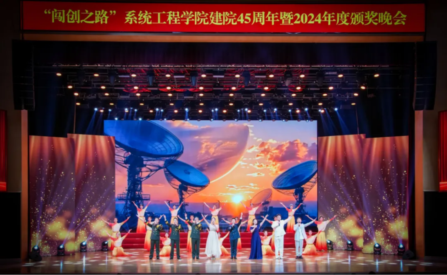 1月11日晚,国防科技大学长沙校区三号院学术交流中心灯光璀璨、气氛热烈,国防科技大学系统工程学院建院45周年暨2024年度颁奖晚会《闯创之路》在此举办。