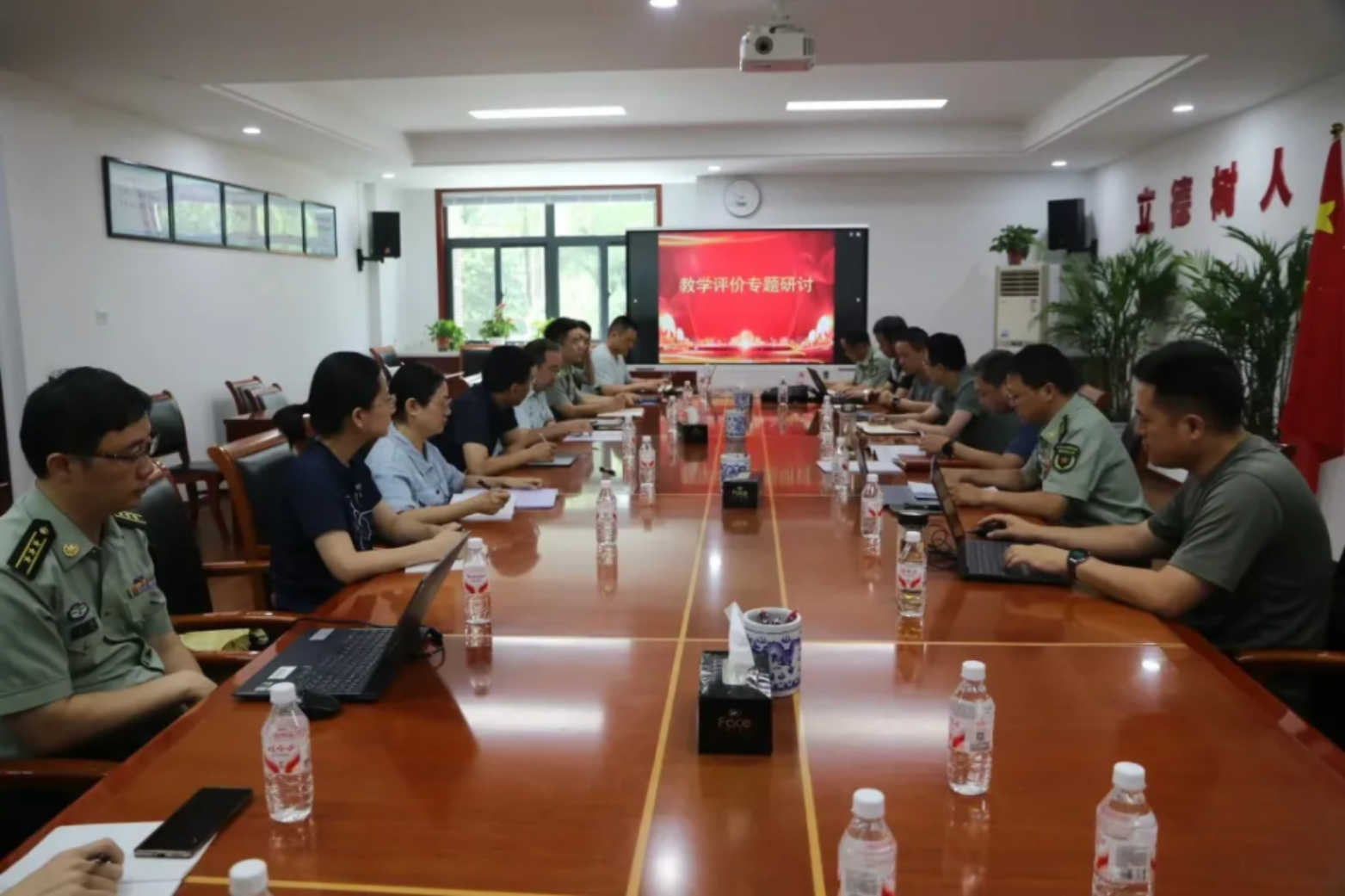 为打赢教学评价迎评攻坚战,电子对抗学院广大教员、保障人员主动选择留在战位、留在一线,锚定一个个重难点项目开展攻关。会议室里,一场场“头脑风暴”密集展开,党委机关和各教研单位集中研讨谋划,对标对表各项评价指标,倒排时间、挂图作战;教学团队集体磨课研课,优化教学设计,打造精品课程。每一个日夜,每一份付出,不仅为了新学期的顺利开启,更是为了那份沉甸甸的使命,这段特别的“假期印记”,必将沉淀为奋进高地之路最坚实的一步!