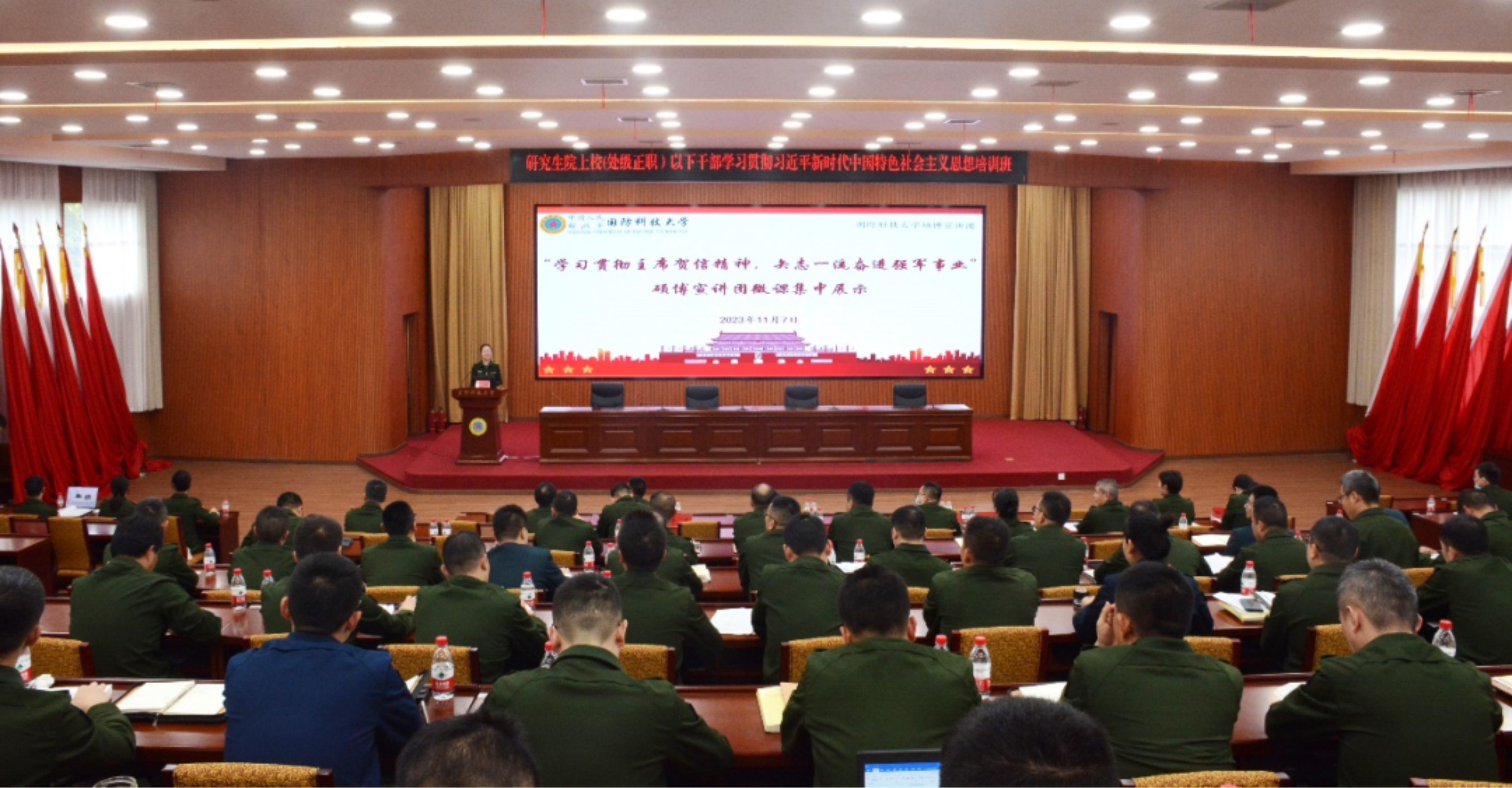 近日,国防科技大学硕士博士宣讲团进行了一场别开生面的微课集中展示。这次授课是“研究生院上校(处级正职)以下干部学习贯彻习近平新时代中国特色社会主义思想培训班”的组成部分。活动现场,平时的教育者与受教育者角色翻转,学员向干部讲授理论课程,双方在展示分享和交流互动中学习理论、深化共识、体悟真理。