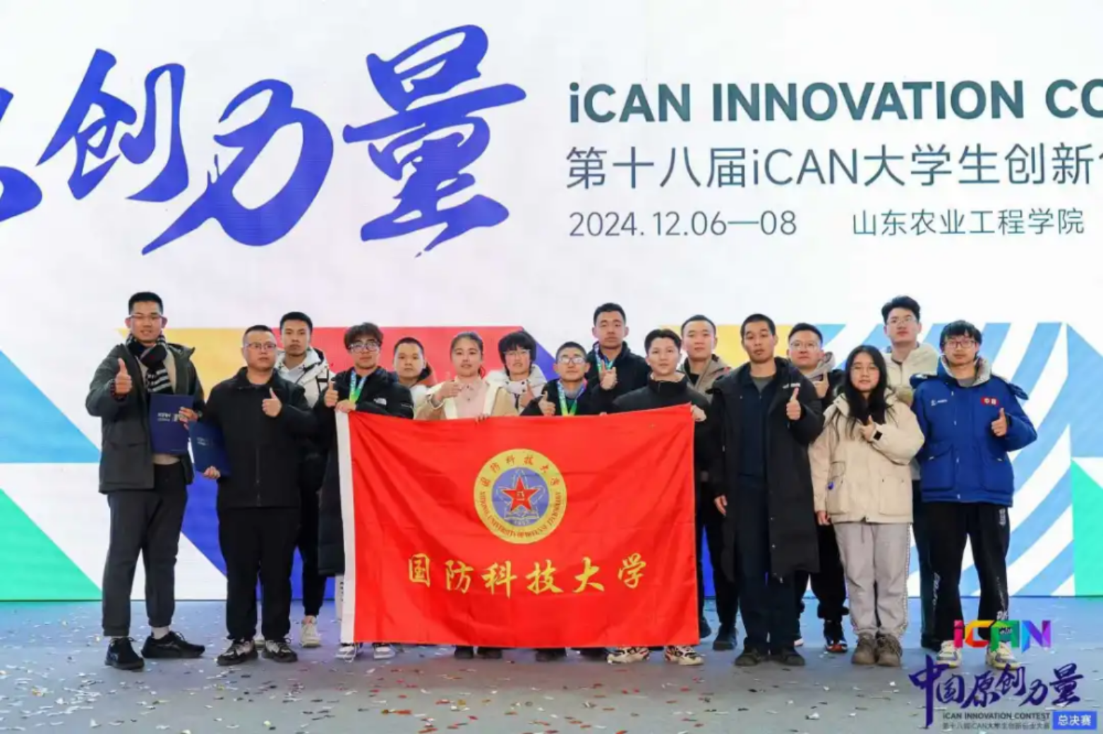近日,第十八届ICAN创新创业大赛在山东淄博圆满落幕,来自国防科技大学的5支参赛队全部获奖,其中4支队伍荣获一等奖,1支队伍荣获三等奖。
