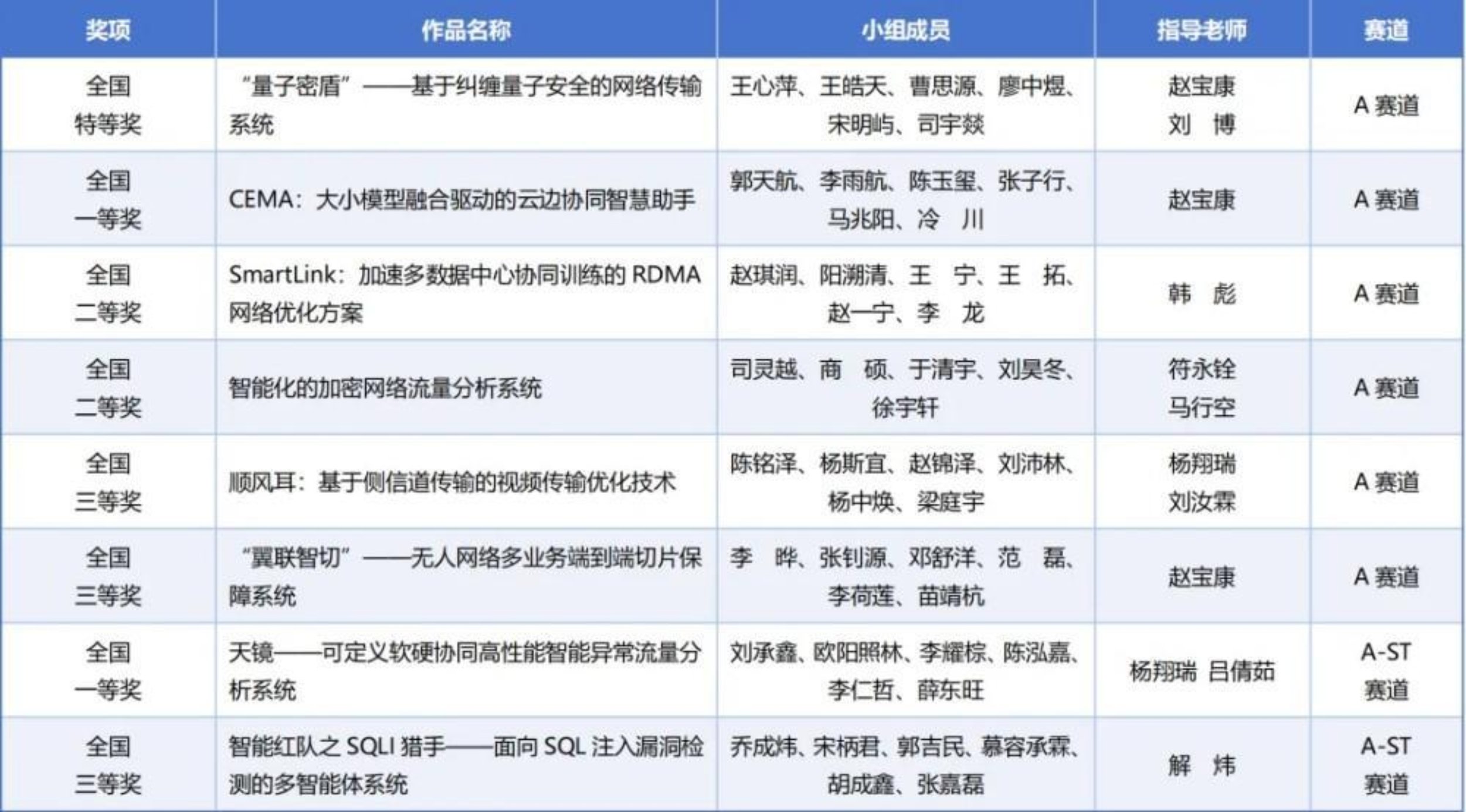本届大赛自3月启航,吸引了全国405所本科院校的14345人次报名,提交了3021件作品。经过层层选拔与激烈角逐,来自全国121所高校的317件优秀作品脱颖而出,最终会师总决赛。我校在本次竞赛的A-ST赛道取得突破,首次取得一等奖,在A赛道连续三年获得特等奖,充分体现了在网络系统能力培养方面所取得的突出成效。