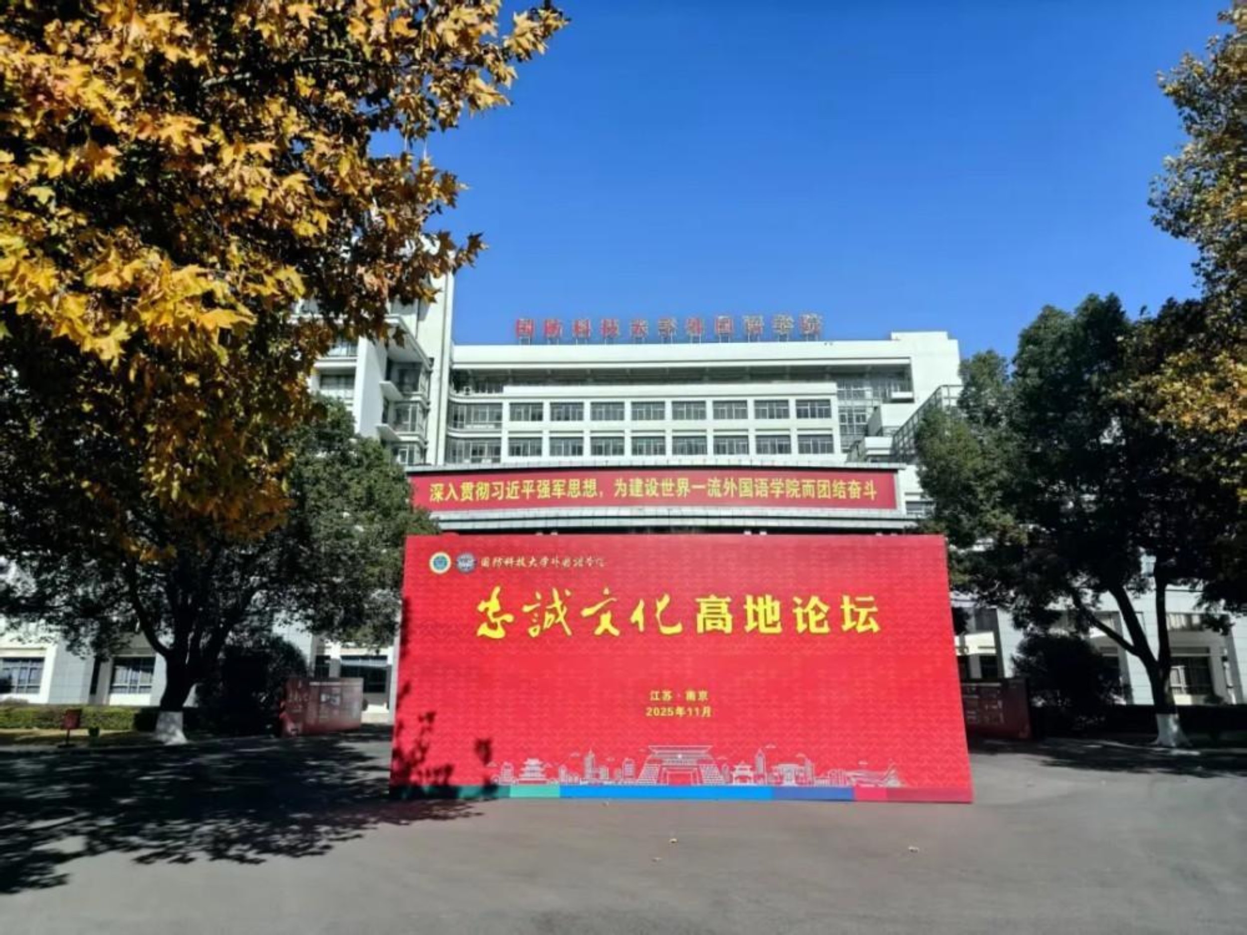 11月28日至29日,首届“忠诚文化”高地论坛在江苏南京成功举办。此次论坛由国防科技大学外国语学院主办,以“问忠诚之道 筑忠诚之基”为主题,来自清华大学、国防大学、国防科技大学、陆军工程大学、信息工程大学等军地高校,重庆红岩革命历史文化中心、南京雨花台烈士陵园、淮安周恩来纪念馆、南京市雨花台烈士纪念馆、重庆红岩革命纪念馆、湖南省衡东县罗荣桓故居等红色场馆的50多位代表齐聚长江之滨、牛首山下,共话忠诚文化,共论忠诚教育。
