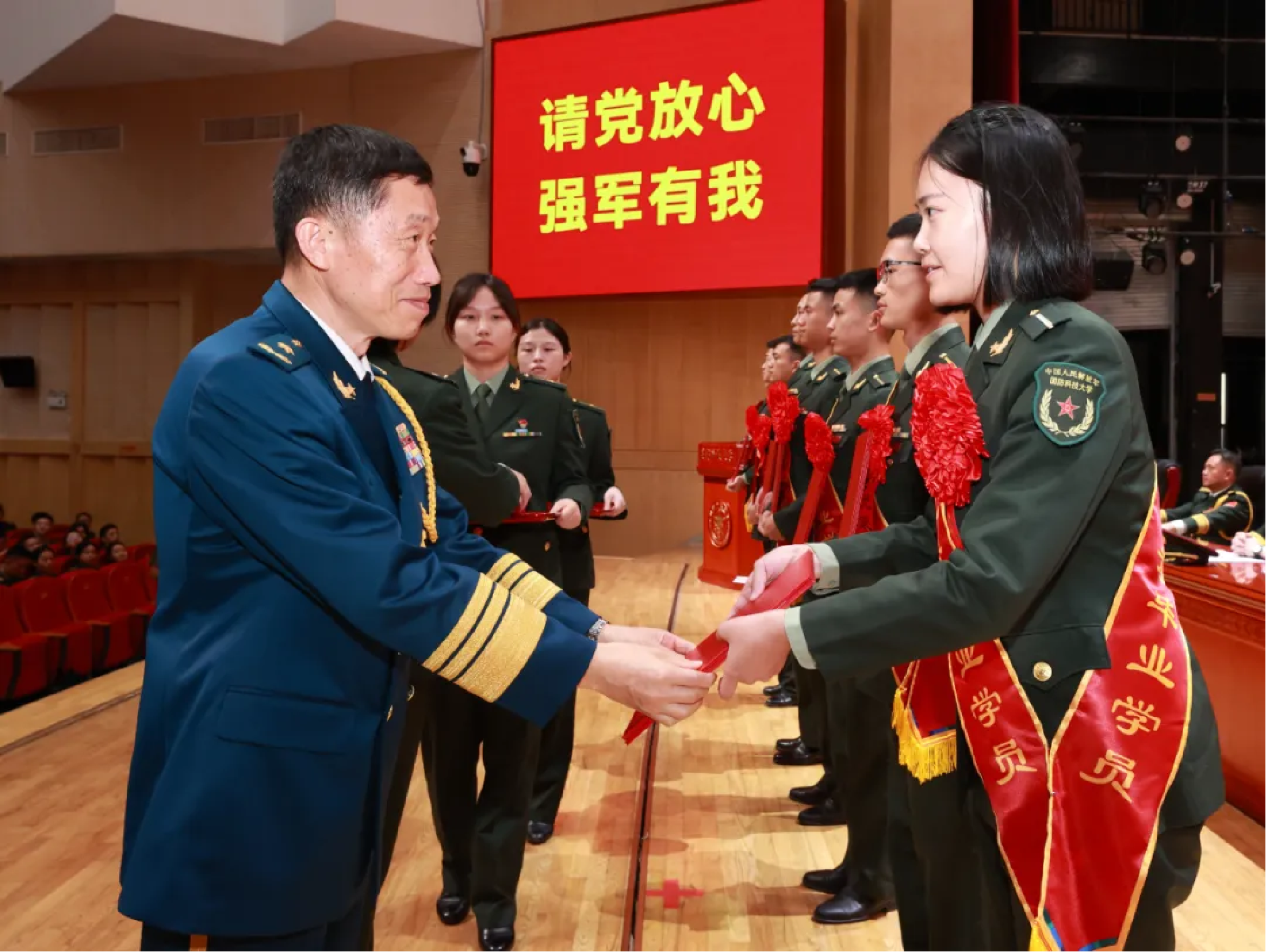 希望同学们牢记初心,成为铁心向党的新一代。青年时期扣好第一粒扣子,人生之路才能越走越宽广。各位毕业学员到2027年建军百年时应在各行各业崭露头角,到2035年就是国家和军队的先锋力量,到本世纪中叶将会成为强国强军的中坚骨干,现在打下的底子决定着未来国家和军队的样子。大家在学校不仅是获取知识和能力,更重要的是理想信念、价值观、意志品质、作风纪律等方面得到全面锻造。要始终坚守初心,加强政治上的革命性锻造,无论走上多高的岗位、走到多远的未来,都要把对党忠诚作为永恒不变的信仰,永远做对党忠诚可靠的坚定举旗人和合格接班人。