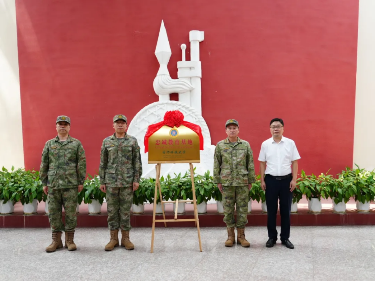 近日,国防科技大学在江西省吉安市永新县三湾改编纪念馆举行“忠诚教育基地”授牌仪式。学校副校长陈金宝、副政治委员兼纪委书记张战出席仪式并为基地授牌,吉安军分区司令员刘宗成、中共永新县委书记郑军平出席仪式。