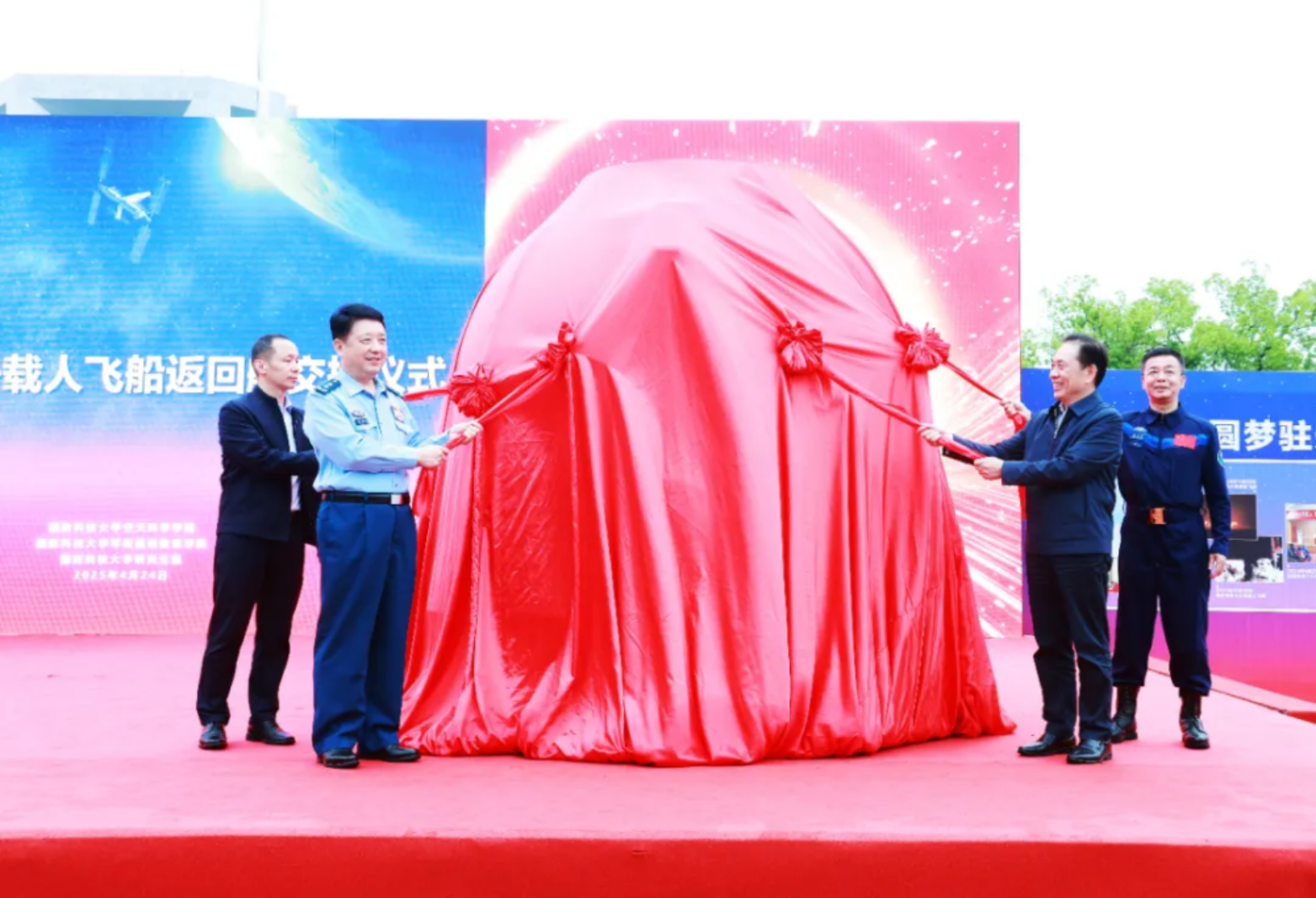活动现场举行了神舟十五号载人飞船返回舱交接仪式,政委陈国强、院士王振国、副总设计师张海联、英雄航天员邓清明共同为返回舱交接落户国防科技大学揭幕。这是一个具有历史意义的重要时刻。神舟载人飞船返回舱是航天员往返太空的座舱,是飞船的指挥控制中心,也是航天员的生命之舟,象征着英雄凯旋之旅、闪耀着太空圆梦之光、镌刻着问天探索之路,不仅是中国载人航天的星际摇篮,也是中国航天人的逐梦方舟,更是中国人探索浩瀚宇宙的永恒荣光,是国家的宝贵财产和精神载体。
