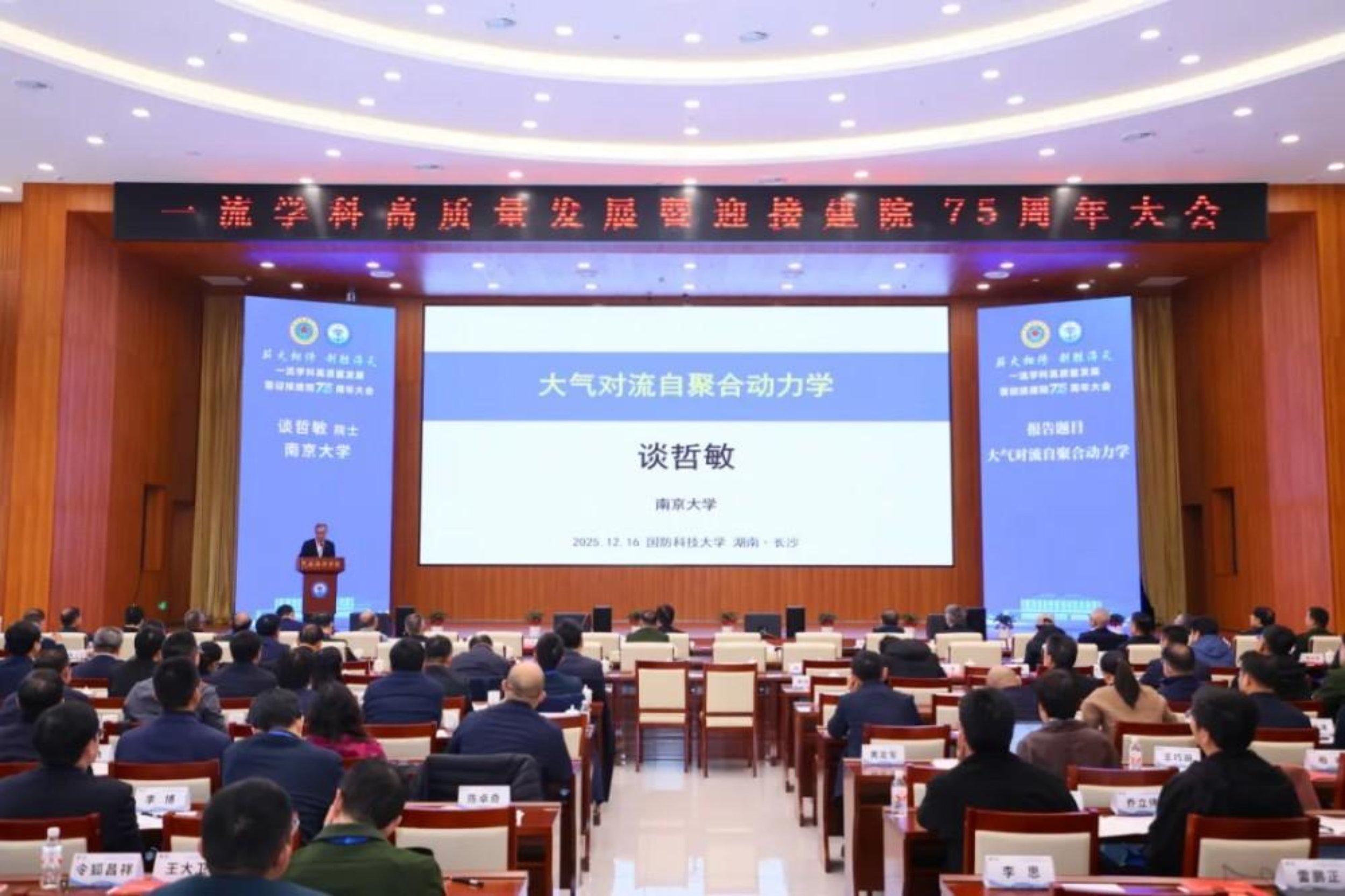 秦淮河畔,薪火相传历芳华;湘江之滨,伫立高地谱华章。12月16日,国防科技大学气象海洋学院一流学科高质量发展暨迎接建院75周年大会在长沙校区三号院召开。14名两院院士,国家部委和军委机关相关部门领导,军地相关单位领导和业内知名专家学者,以及学校领导、学校机关部门和兄弟院(所、基地)领导,学院老领导、老专家和校友代表共300余人出席大会,共忆办学历程、共商发展大计、共绘强军蓝图。