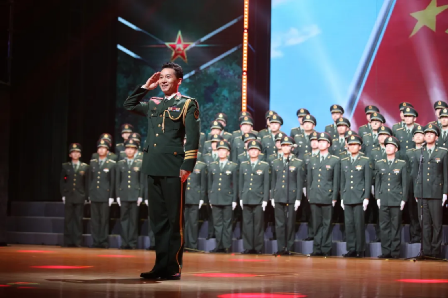 著名男高音歌唱家刘和刚踏着悠扬的前奏缓步登场,一首经典曲目《父亲》,极具穿透力的嗓音,将一字一句唱得饱含温情;紧接着,刘和刚以饱满的热情带来学校原创歌曲《高地荣光》,豪迈的旋律与精彩的演唱彻底点燃全场;《好男儿就是要当兵》更是掀起全场大合唱,将晚会气氛推向高潮。