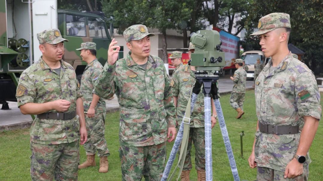 在某部训练场,正在参加实习的气象海洋学院学员精神抖擞、军容严整。黎湘现地观摩课题演练,认真了解学员对装备参数的熟悉情况,驻足交流装备操作细节,细致询问大家的日常安排、饮食起居和实习感受,并向参加实习任务的全体师生致以节日问候,勉励大家珍惜实习机会、淬炼能力素质,努力学习取经,顺利实现“带兵人”的转变,同时注意安全防护,确保圆满完成任务,切实把部队好经验好传统好作风带回学校。
