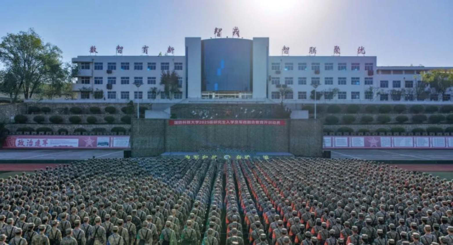 近日,校长黎湘带队赴试验训练基地,检查指导2025年研究生入学及军政融合教育工作,看望慰问研究生新学员,出席开训动员大会并讲话。