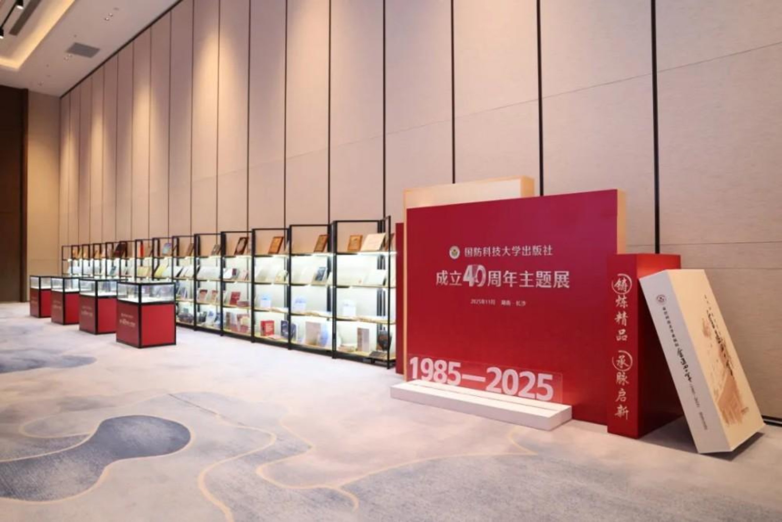 论坛现场还举办了出版社成立四十周年成果展,展出了近40份珍贵的历史档案,100余种精品图书,《国防科技大学学报》,以及国家级、军队级、省部级荣誉证书和奖杯奖牌。