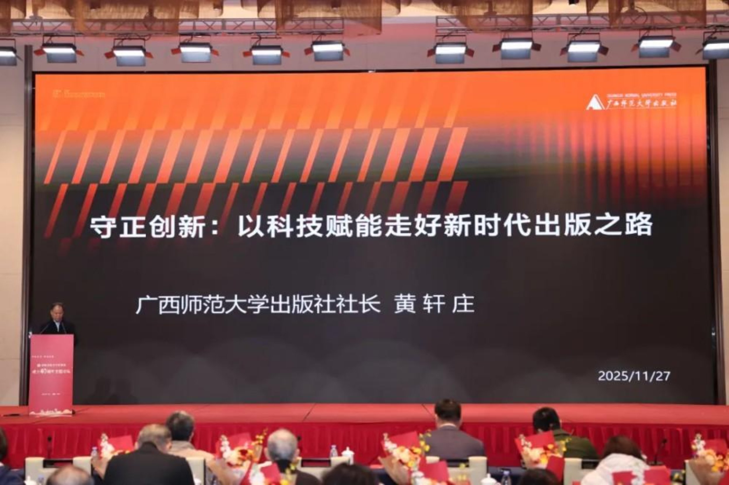 主题论坛环节,高等教育出版社副社长张丽娜、中国人民大学出版社社长李永强、广西师范大学出版社社长黄轩庄,围绕“出版有道——数智时代中的变革与坚守”主题,分别作了题为《初心如磐 变革致远——数智时代教育出版的破局与生长》《数智时代大学出版社的守正创新》《守正创新——以科技赋能走好新时代出版之路》的报告。