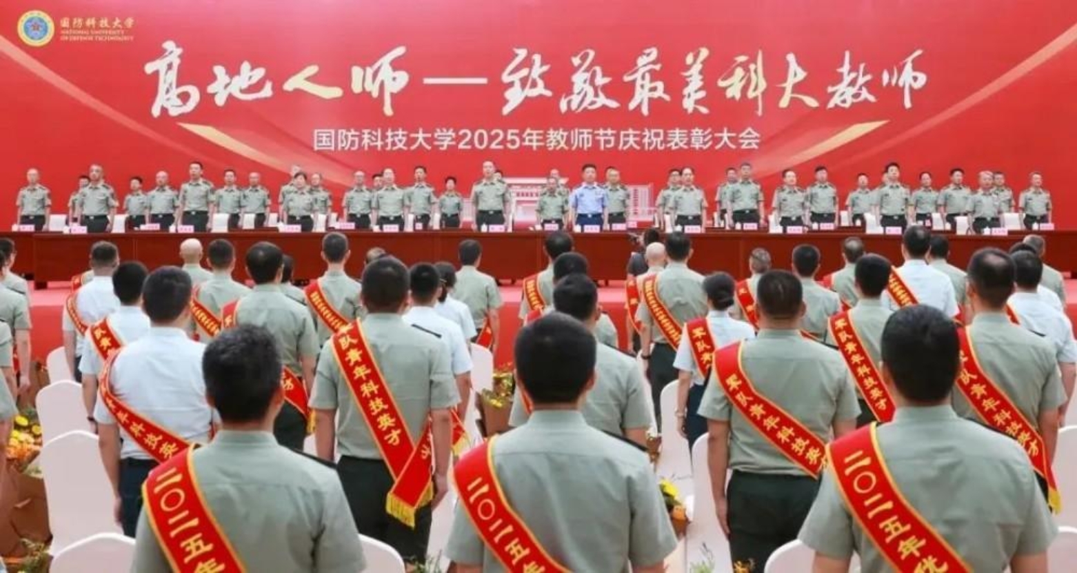 军徽闪耀见证奋斗荣光,师道永续书写高地芳华。9月10日上午,国防科技大学召开“高地人师——致敬最美科大教师”2025年教师节庆祝表彰大会,隆重庆祝第41个教师节。学校在职两院院士及长沙校区待遇五级以上专家教授在主席台就座,去年教师节以来受奖励表彰教师、光荣退休教师代表等在长沙校区主会场参会。学校校长黎湘、政委陈国强出席大会。
