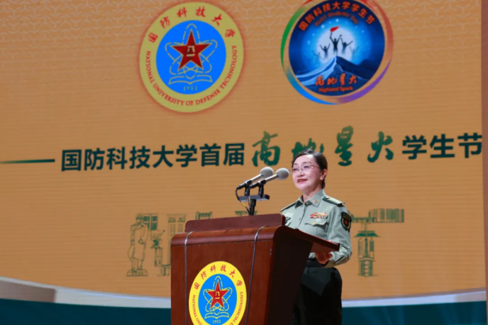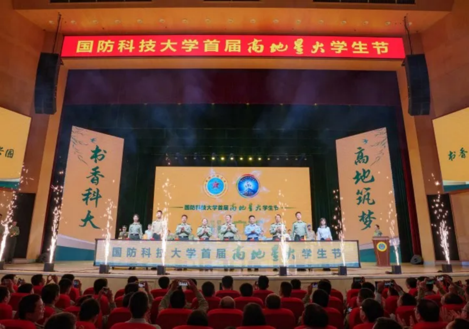 4月23日晚,国防科技大学在长沙校区三号院举办首届“高地星火”学生节开幕式,学校校长黎湘致辞,政委陈国强出席。