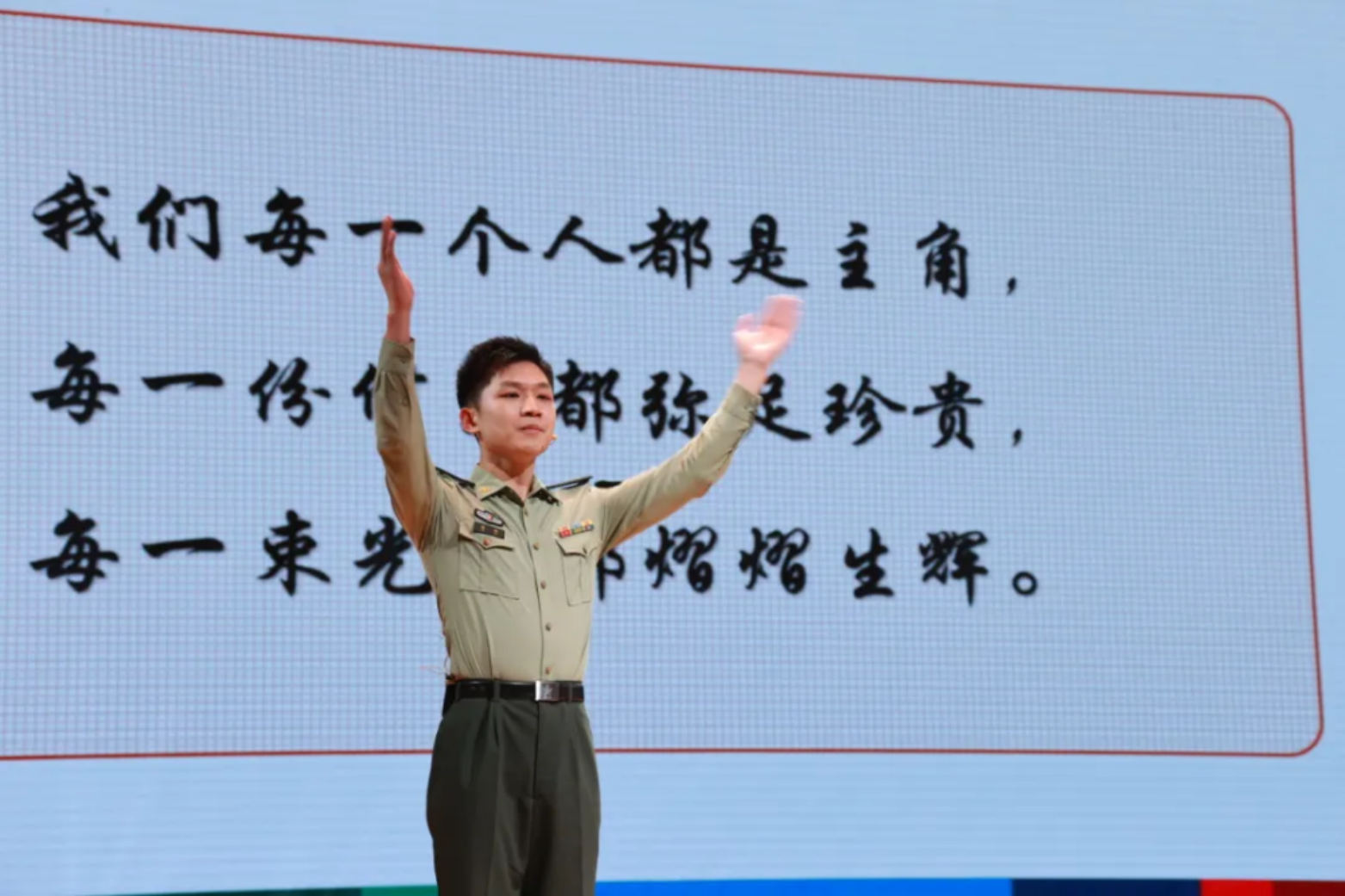 开幕式在《高地之上 青春闪光》主题视频中拉开序幕。学员演唱的《高地星火》主题歌曲,以激昂的旋律与充满科技感的表达,展现了新时代科大学子在强军征程中勇攀高峰、矢志报国的青春风采。