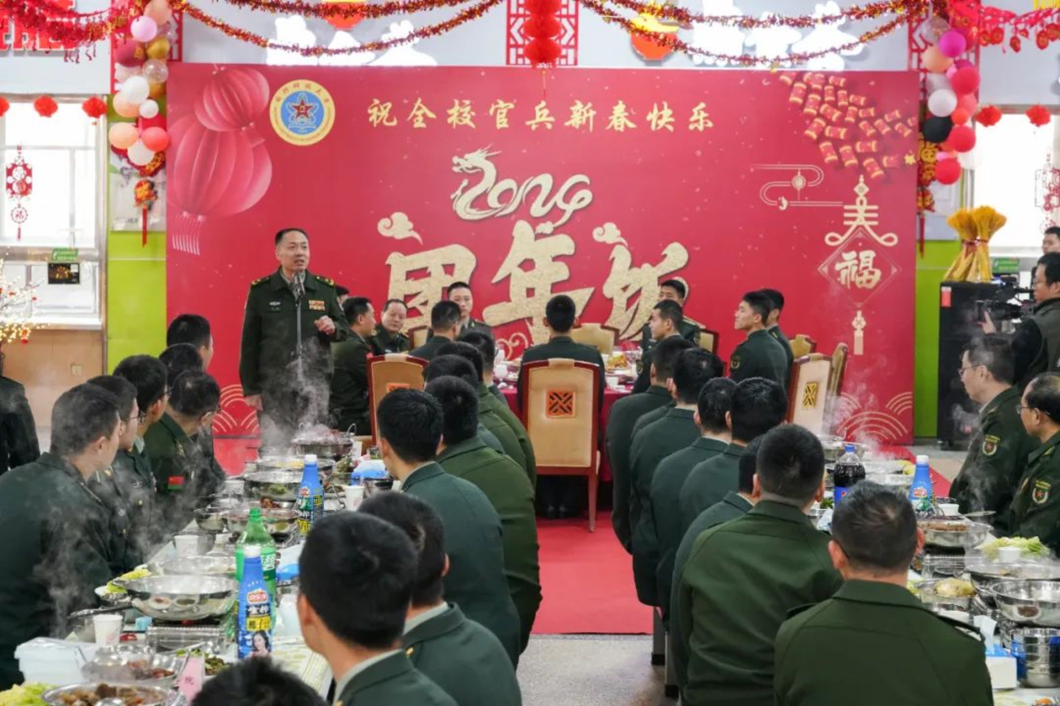 喜迎新春,全校洋溢着欢乐祥和的节日气氛。在研究生院和军政基础教育学院学员宿舍,黎湘详细询问留守学员假期学习生活安排,同留守学员、队干部和家属一起参加新春茶话会,观看文艺节目。他表示,看到学员假期安排很充实、活动组织很暖心、每个人生机勃勃有活力感到非常高兴;学员们舍小家为大家,自愿留守护校,体现了科大人的奉献精神和强烈担当;过去一年,学员们学习训练都取得了丰硕成绩,代表学校表示祝贺。他强调,一滴汗水、一份收获,甲辰龙年,希望大家振奋龙马精神、锐意开拓进取,夯实理想信念、练就过硬本领、强健身心基础,不断取得更大成长进步。他指出,广大家属是学校一流事业的重要支撑,对他们的默默支持和奉献牺牲表示衷心感谢。在三号院一食堂,黎湘与留守队干部、学员共进团年饭,向全校师生员工及家属拜年。