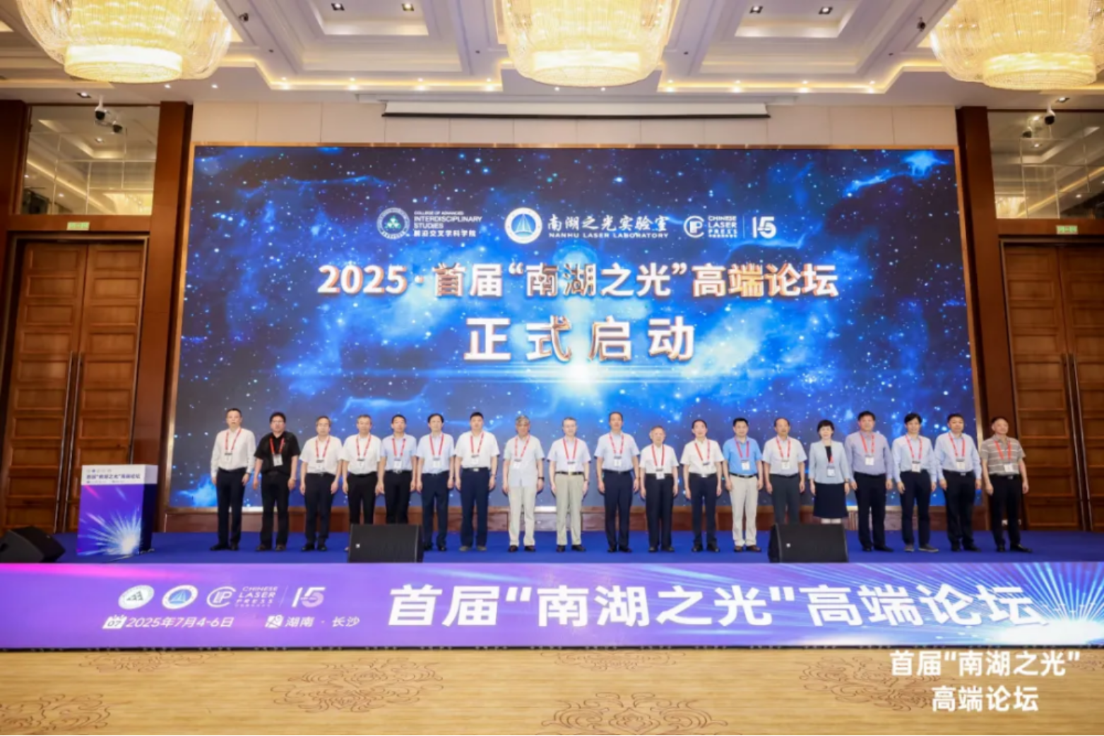 2025年7月4日至6日,首届“南湖之光”高端论坛在湖南长沙成功举办。本次论坛由国防科技大学南湖之光实验室、前沿交叉学科学院和中国激光杂志社共同主办,是南湖之光实验室为打造特色文化IP推出的品牌会议活动。论坛以“光剑·激光战略与创新”为主题,聚焦光子材料与器件、先进固态激光、新型气态激光、智能无人激光对抗等前沿热点领域,汇聚了9位院士、50余位知名专家学者及300余位学术界与产业界代表参会。与会专家围绕主题展开了全面深入的学术交流,集中展示了激光技术领域的最新研究进展与成果。国防科技大学校长黎湘出席论坛开幕式并致辞,政委陈国强为参会的四位特聘专家颁发证书。