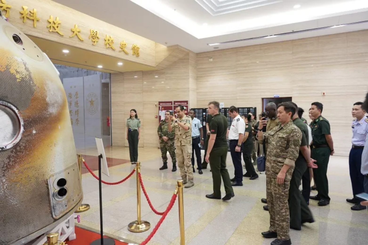 为进一步增强外国留学生的归属感、认同感和自豪感,近日, 国防科技大学外国语学院昆山院区组织来自18个国家共计26名优秀毕业学员赴湖南长沙、韶山等地,开展了为期3天的研学活动。学校政委陈国强接见优秀毕业学员代表。