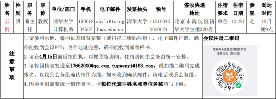 “高校电子信息类课程教学改革研讨会(第八届)”回执