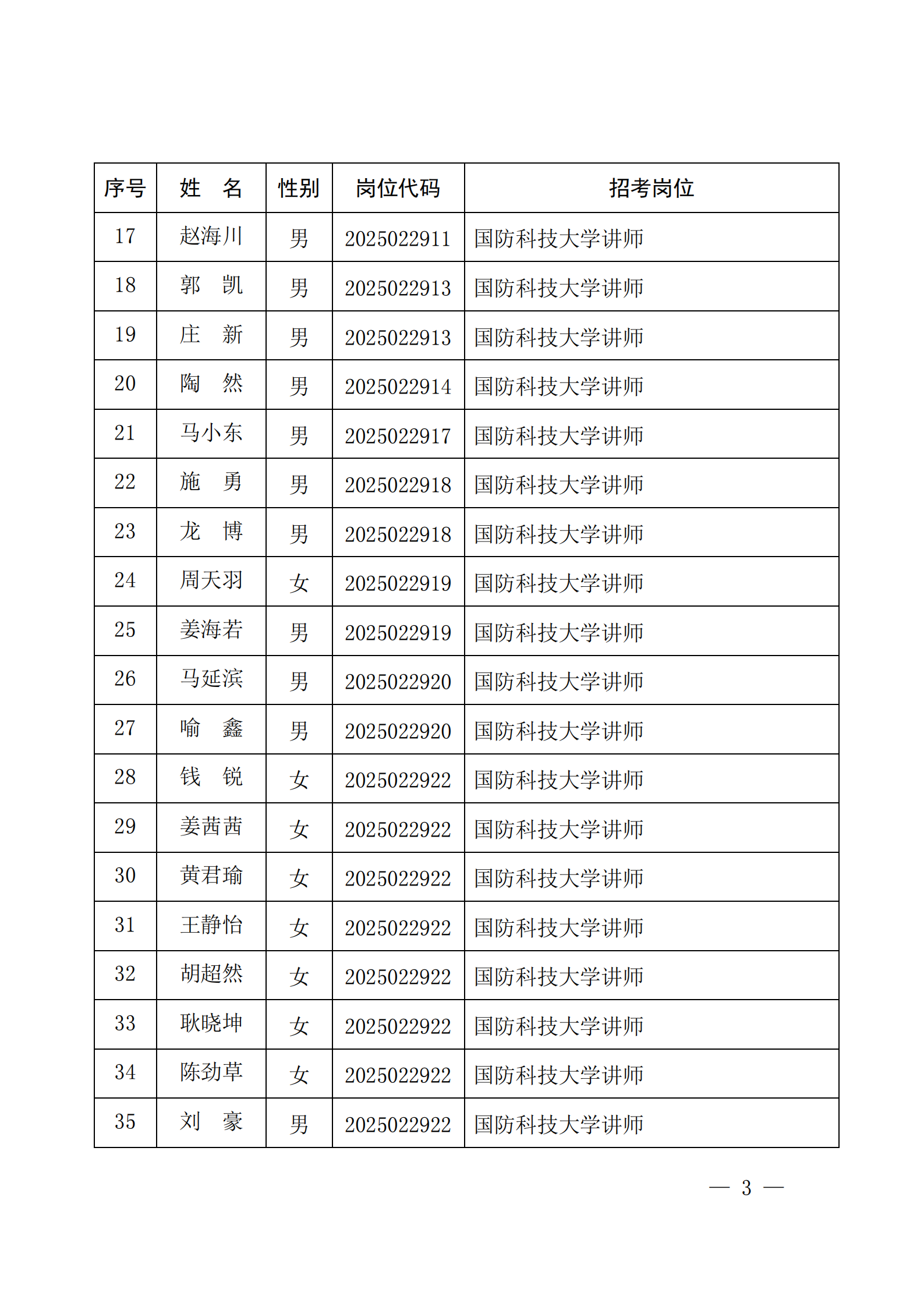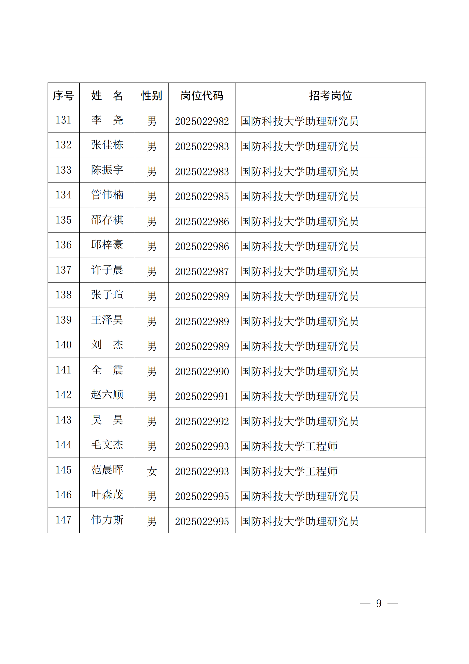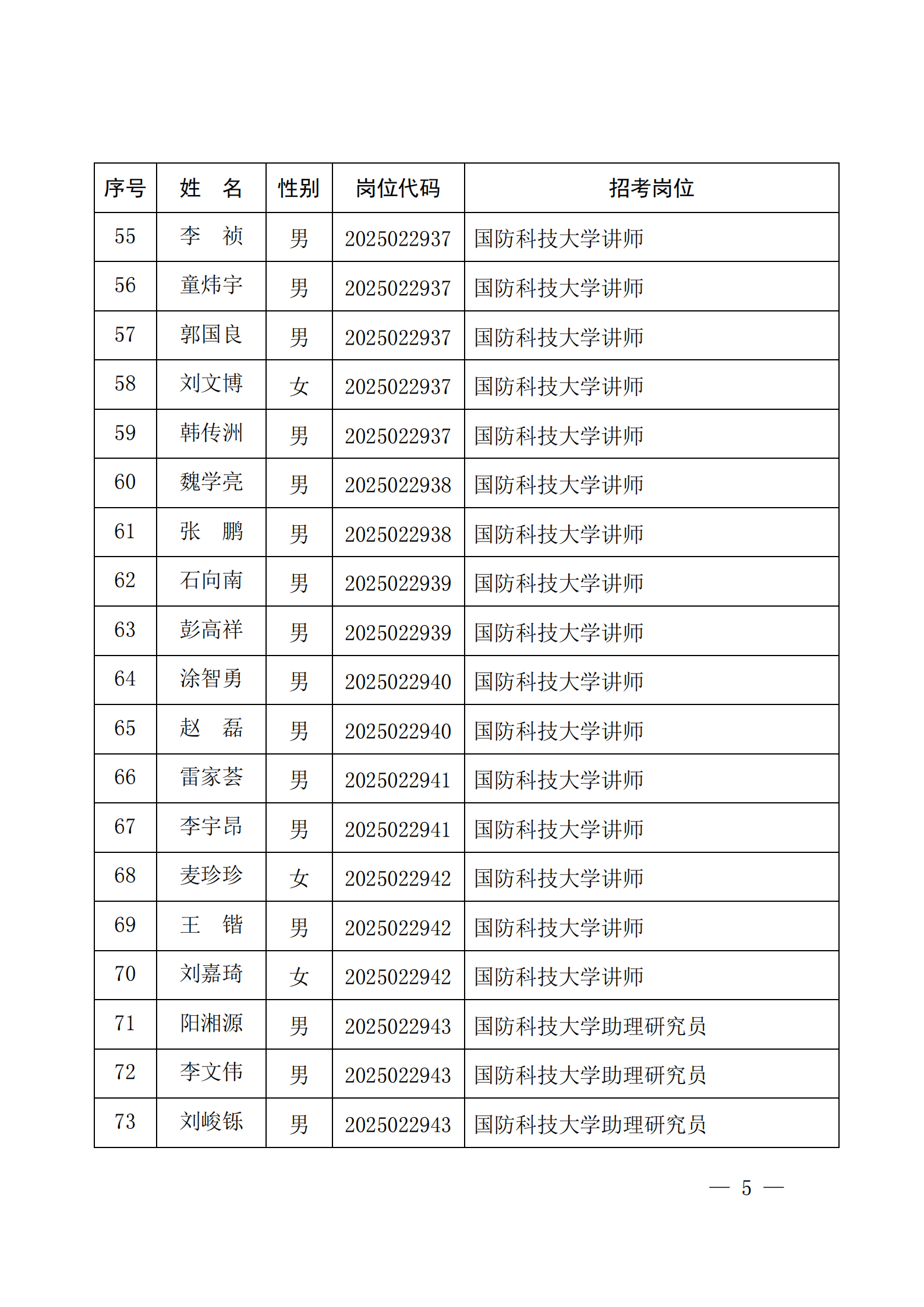 公示国防科技大学2025年军队文职人员公开招考免笔试直接面试人员名单