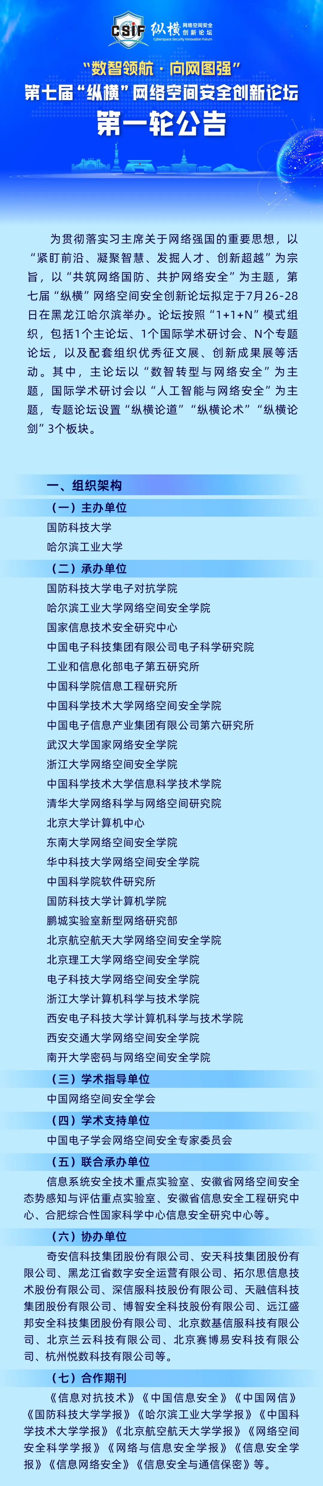 “数智领航 向网图强”——第七届“纵横”网络空间安全创新论坛第一轮公告