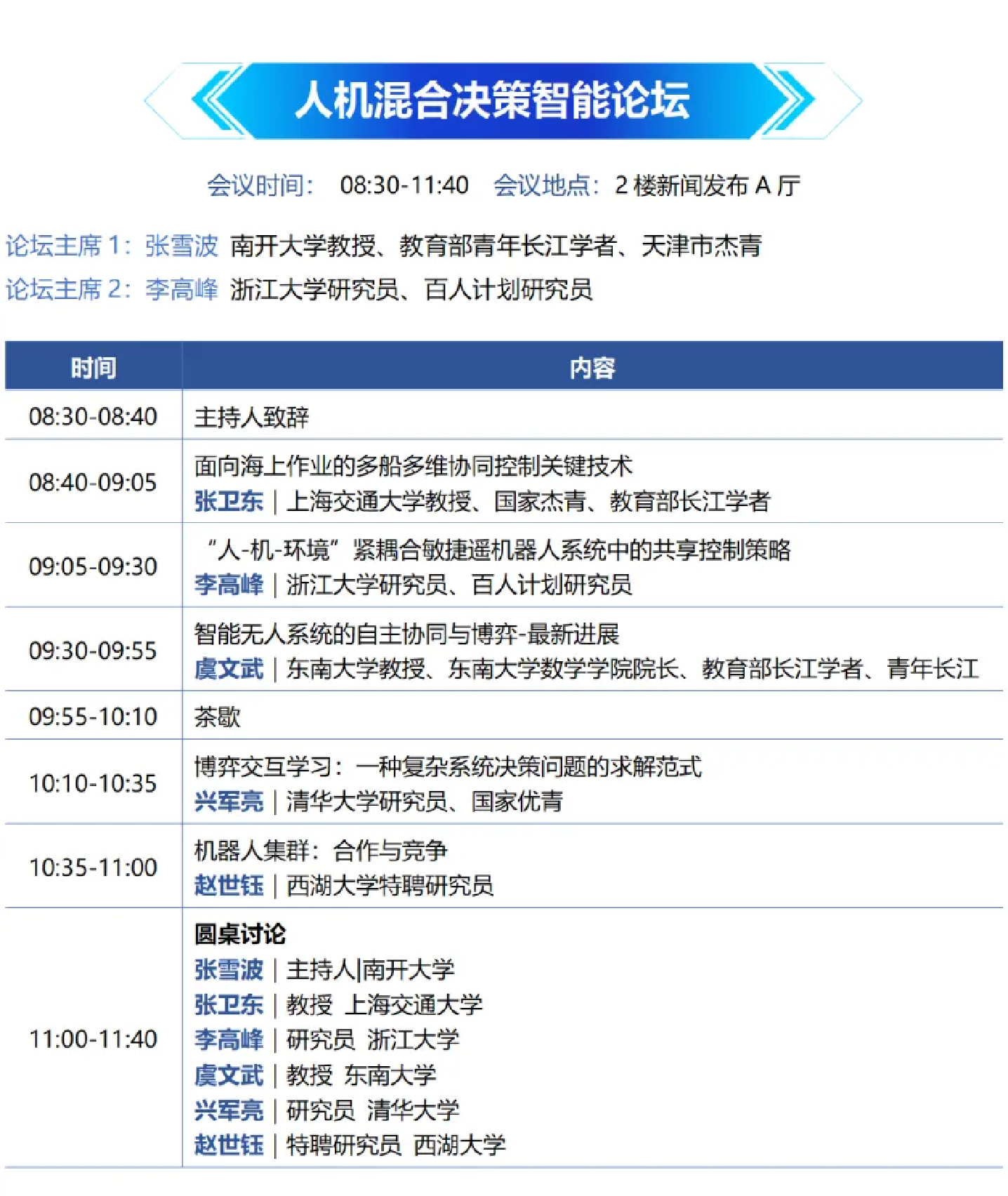 大会主席:费爱国、戴琼海、王怀民