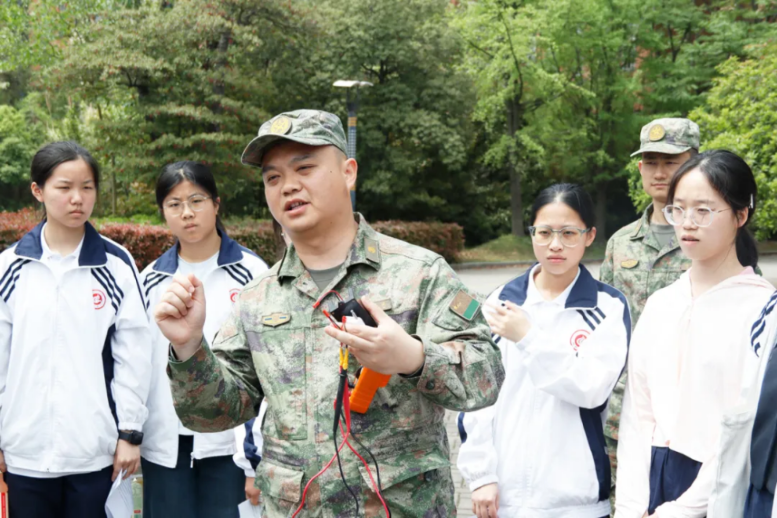 近日,空天科学学院智慧火箭俱乐部赴株洲市第二中学开展科普活动。图为该院教员讲解火箭点火装置工作原理。(官伟卓)