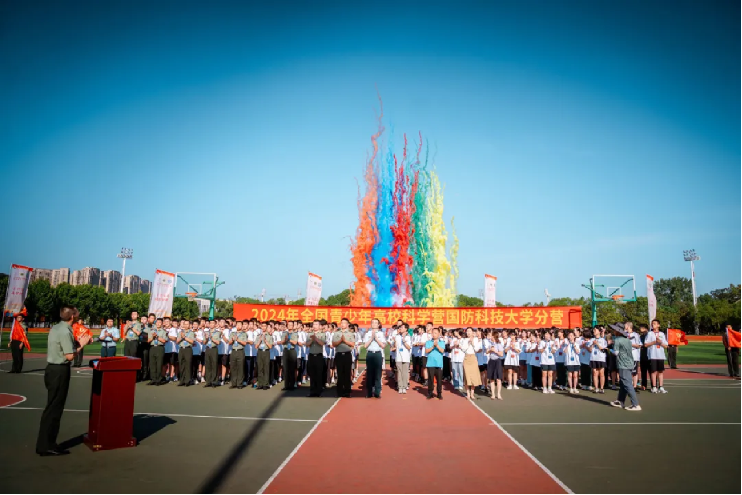 7月22日,骄阳似火的长沙见证了科大分营的盛大开营。开营仪式上,副校长陈金宝宣布科学营正式开启,礼炮声中,营员们迎来了这一激动人心的时刻。这一刻,不仅是科学营的起点,更是营员们心中科学梦想的起点。在国防科大这片充满热情与活力的土地上,他们将开启一段探索科学、追求梦想的旅程。