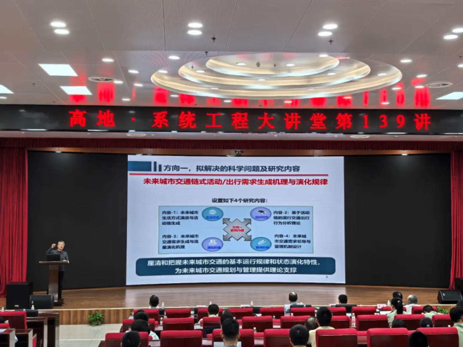 4月25日,高地·系统工程大讲堂第139讲在学校长沙校区三号院B105报告厅举行。北京航空航天大学黄海军教授、中国科学院大学李建平研究员、东北大学蒋忠中教授、北京师范大学樊京芳教授,围绕“复杂系统智能决策”主题作专题报告。黄海军教授从交通拥堵时空特征与行为多样性出发挖掘拥堵演化规律;李建平研究员以交叉学科视角研究数据定价创新模型;蒋忠中教授通过博弈论解析供应链韧性优化路径;樊京芳教授结合统计物理理论探讨复杂系统相变临界机制。专家报告聚焦智能决策核心问题,融合交通、数据经济、供应链管理等跨领域研究,展现了复杂系统理论在解决现实挑战中的前沿应用价值。