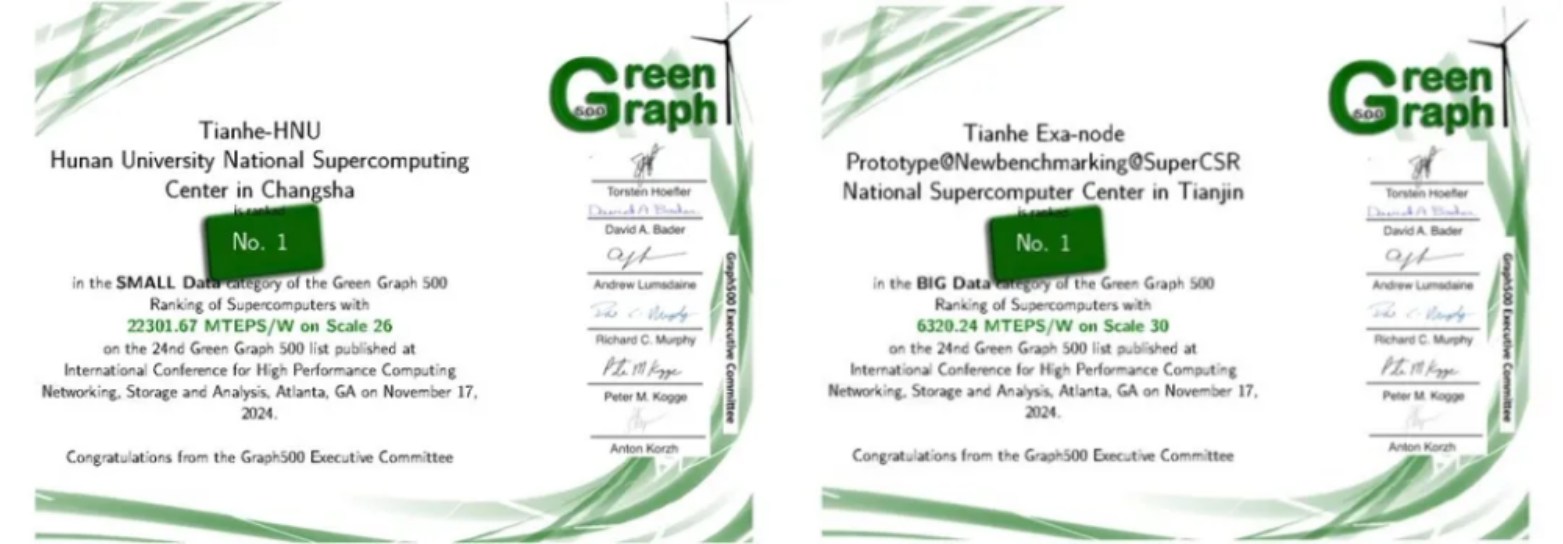 * 11月,由国防科技大学计算机学院研制并部署于国家超级计算天津中心和长沙中心的国产主机系统分别荣获Graph500大数据图计算能效(GreenGraph500 Big Data)世界第一名和小数据图计算能效(GreenGraph500 Small Data)世界第一名*