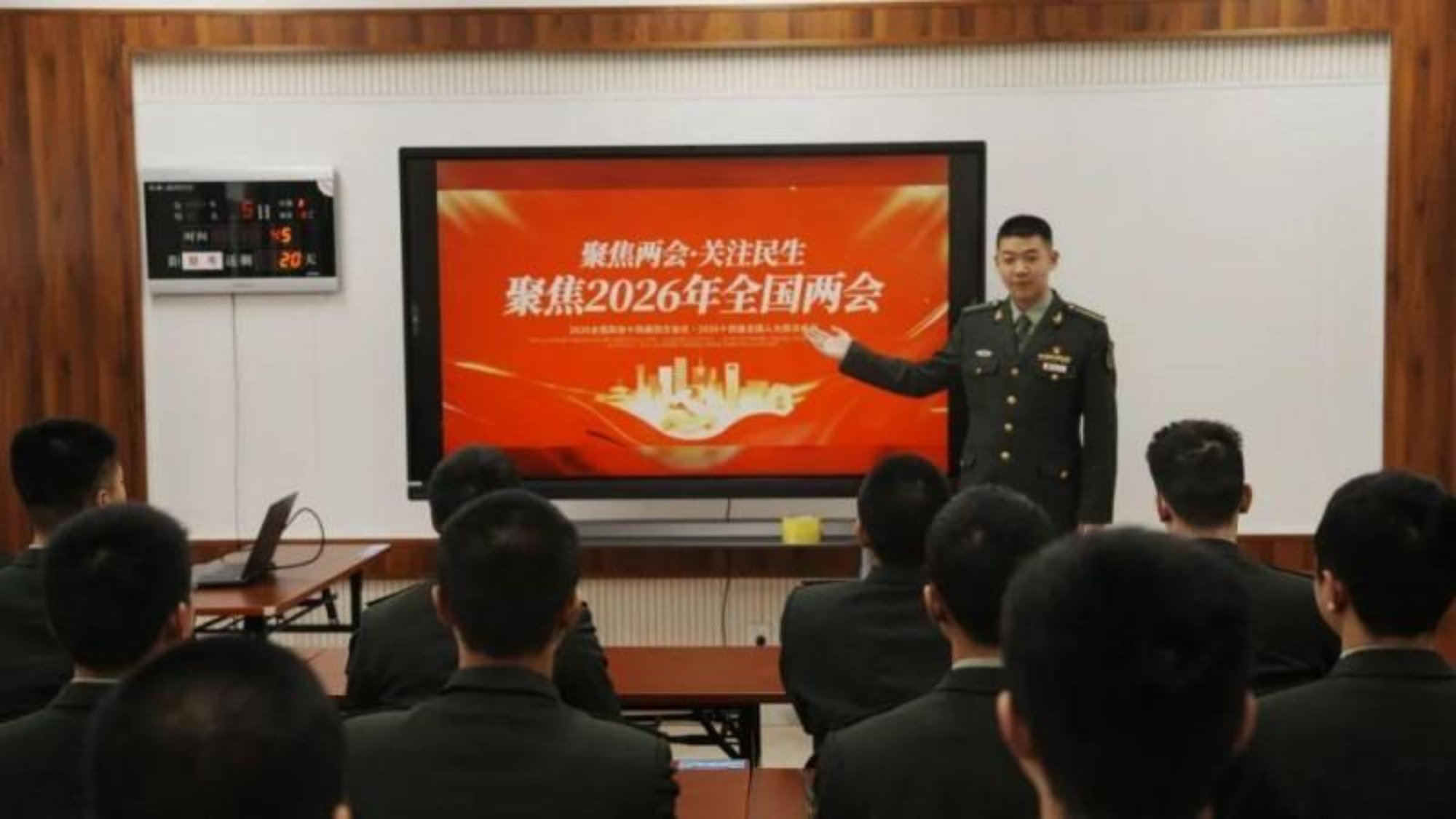军政基础教育学院通过主题宣讲、知识竞赛、心得分享等多样化形式,学习贯彻两会精神。学习研讨中,师生围绕政府工作报告中的热点话题展开深入交流,结合学科专业谈认识、说发展,进一步凝聚思想共识。学员刘佳音分享道:“我将以两会精神为指引,紧盯战场需求锤炼过硬本领,把个人理想融入国防事业,以青春之我、奋斗之我,为服务部队备战打仗贡献青春力量。”