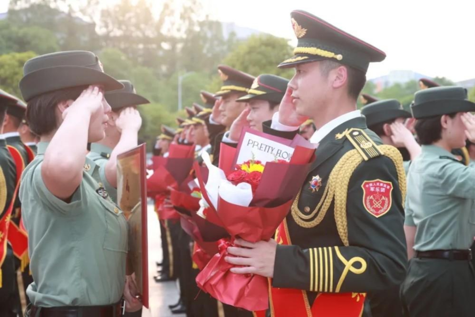 凯歌伴军乐齐鸣 繁英共丹霞一色