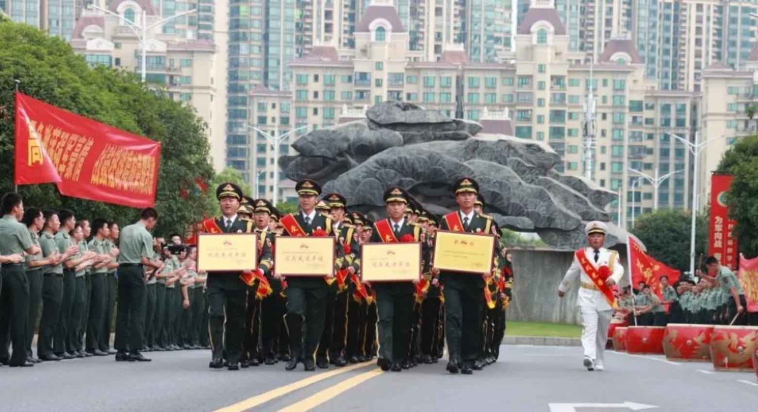 “阅兵先进单位”“标兵单位”等奖牌