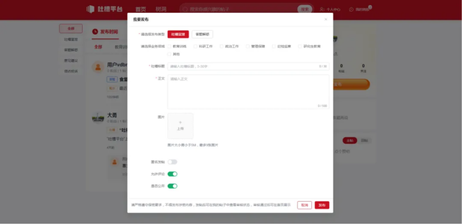 别担心,我们懂你!现在,吐槽平台也开通树洞功能啦!