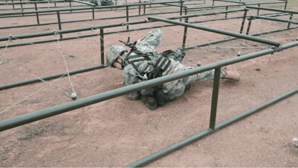救护员们匍匐穿越10米铁丝网封锁