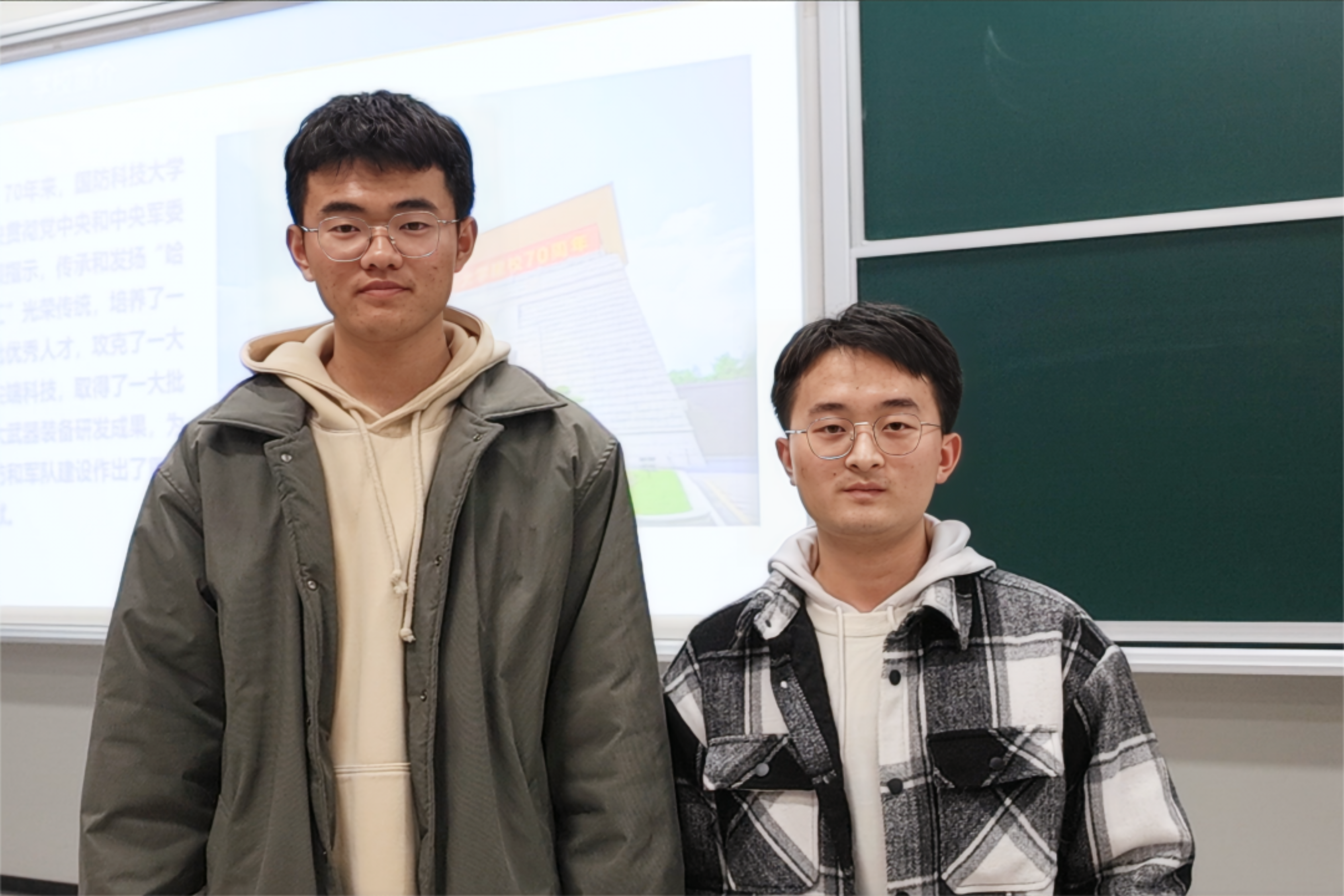 我们高三的时候现场聆听了科大学长的汇报宣讲,正是那次活动笃定了我们选择科大的信念。我们希望可以追随学长学姐的脚步,将这份精神与薪火传递下去,让强军报国的热情扎根在每名高中同学的心中,激励大家将似火青春奉献给伟大祖国。——2023级无军籍地方本科学员 胡湘瑜、江兴翔