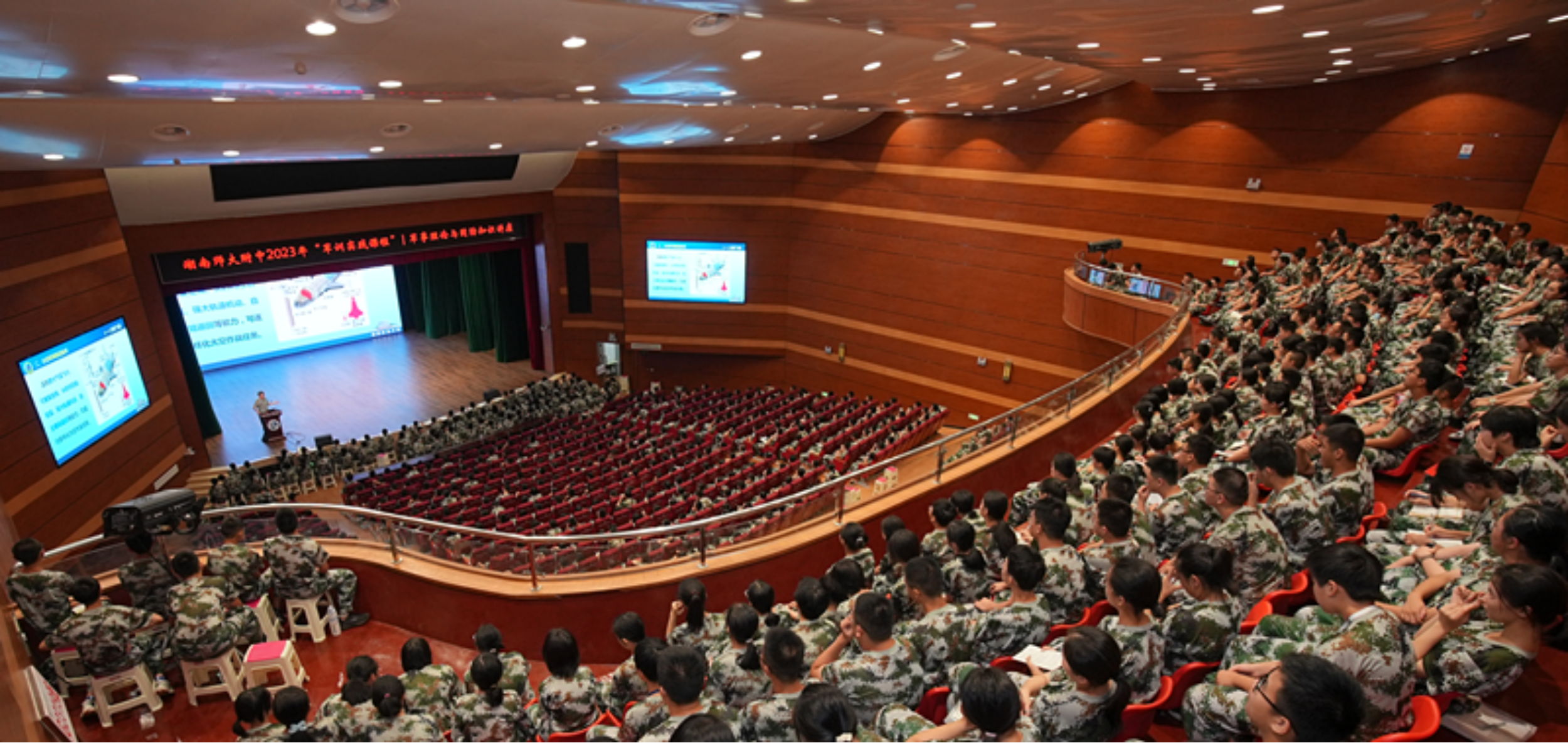 8月26日上午,空天科学学院教授杨乐平走进位于学校乡村振兴对口帮扶地湘西州凤凰县廖家桥镇的华鑫实验学校,围绕国家安全视角,为正在军训的高中生们讲述了世界太空军事发展历史,深入浅出地介绍太空安全前沿科技。27日下午,杨教授又马不停蹄地来到湖南师范大学附属中学,与1400余名师生畅谈太空风云、点评前沿热点,通过传授太空军事知识帮助同学们树立国防思想,激发爱国情感。