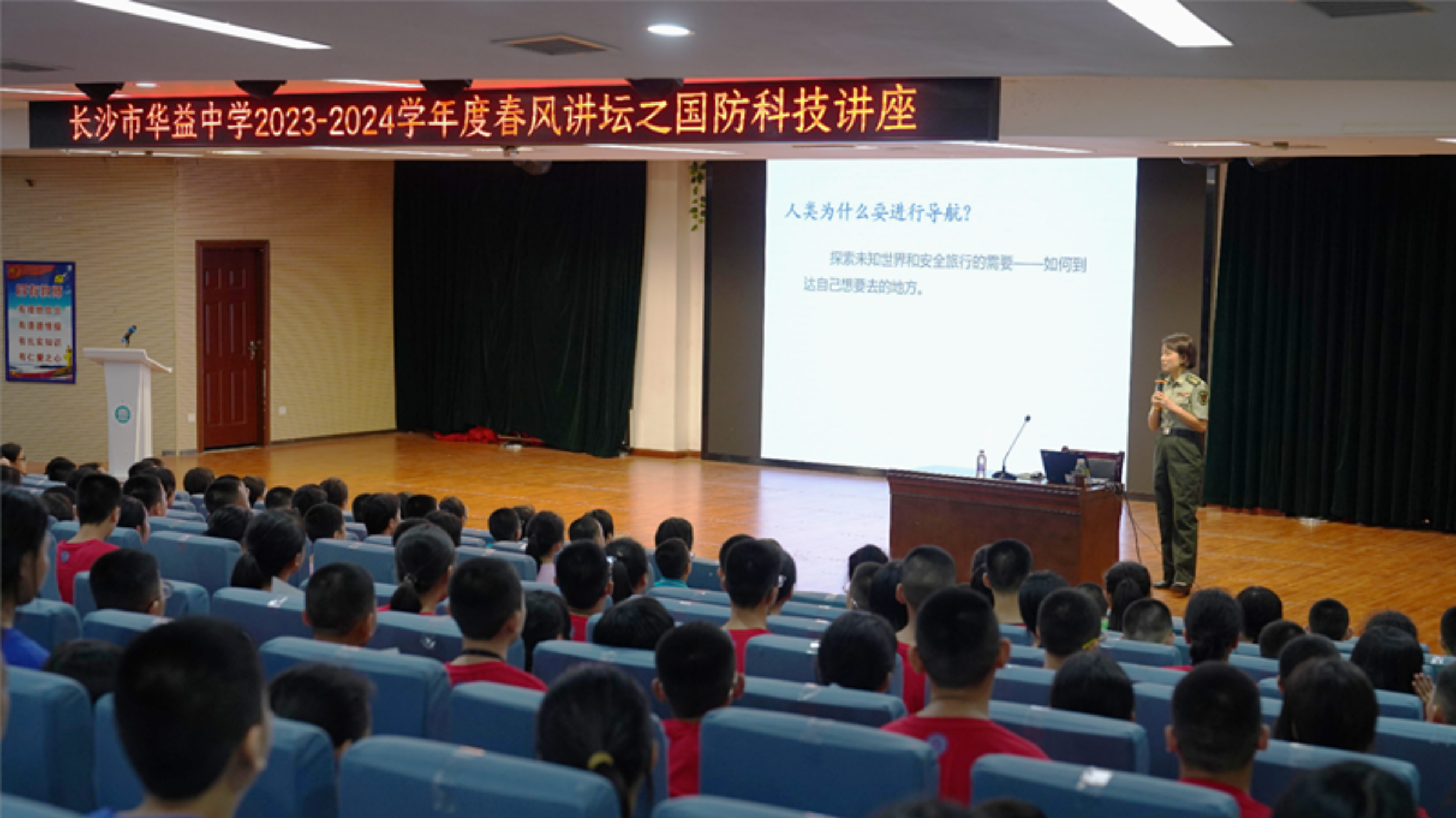 27日晚,电子科学学院导航与时空技术工程研究中心研究员唐小妹应邀到长沙市华益中学作报告,面向初一新生们普及北斗卫星导航系统相关知识,以个人亲身经历和体会,讲述中国北斗从无到有、从弱到强的发展历程和光明前景。国防科大一代代“北斗人”干惊天动地事、做隐姓埋名人的感人故事,深深触动了现场孩子们的心弦,潜移默化中在心中埋下科技强国的种子。